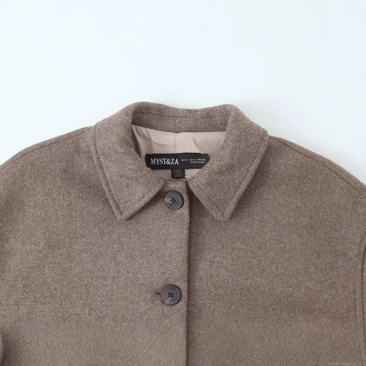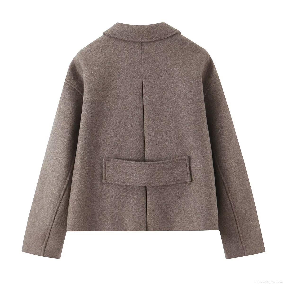 Women Fashion Camel Polyester Wool Like Short Coat Single Breasted Notch Lapel Loose Fit Solid Color Casual Autumn Winter Outerwear Jacket