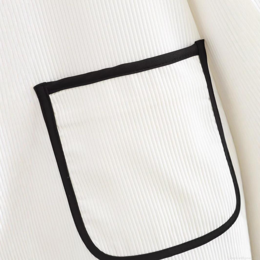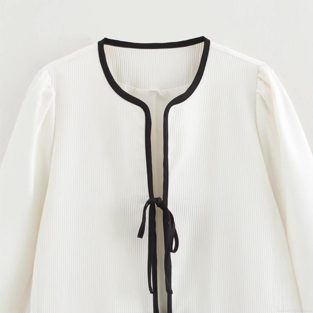 Women Fashion Contrast Trim Ribbed Cardigan Jacket Elegant Round Neck Tie-up Long Sleeve Outerwear With Pockets Solid White Black Trim Top For Casual Party Dating Lady