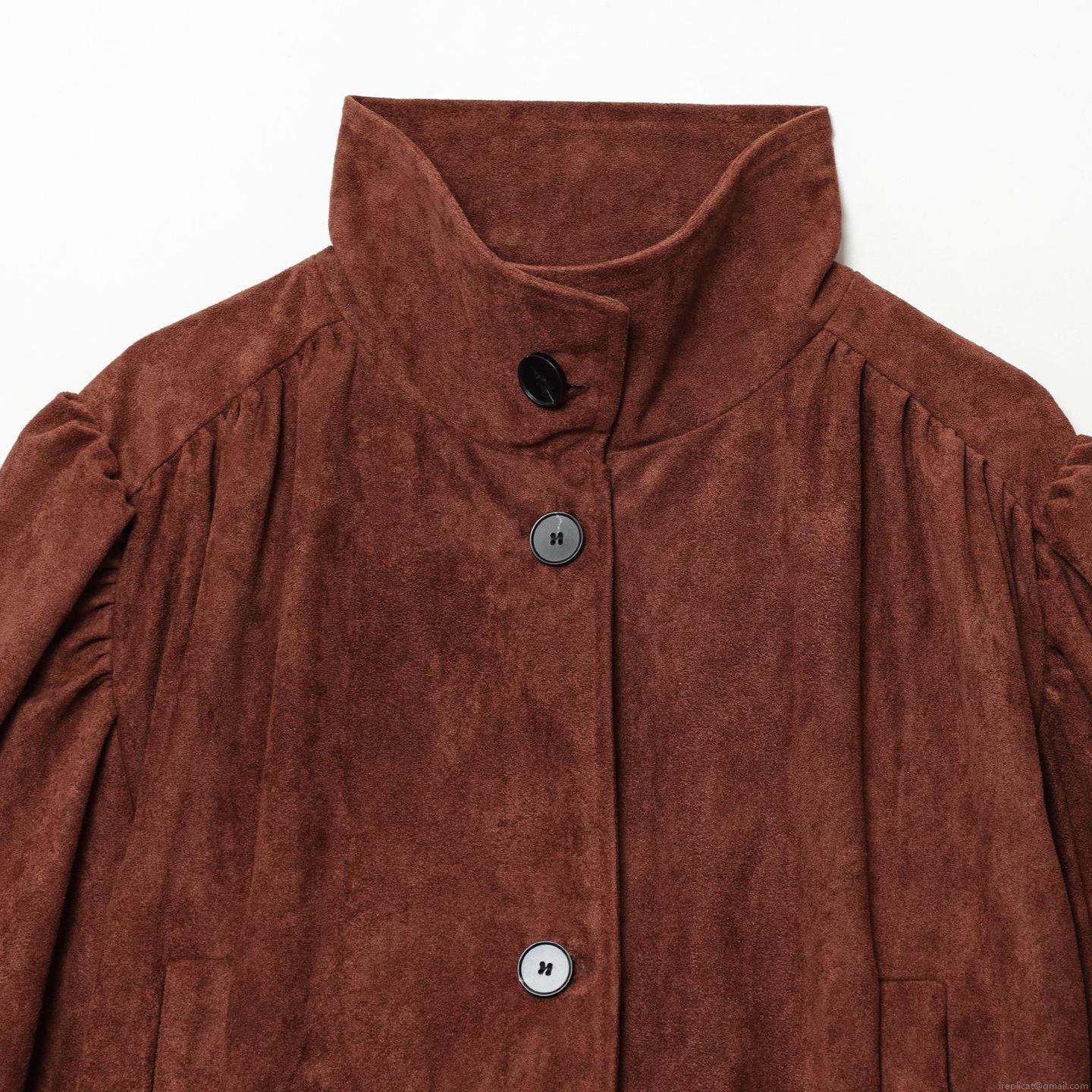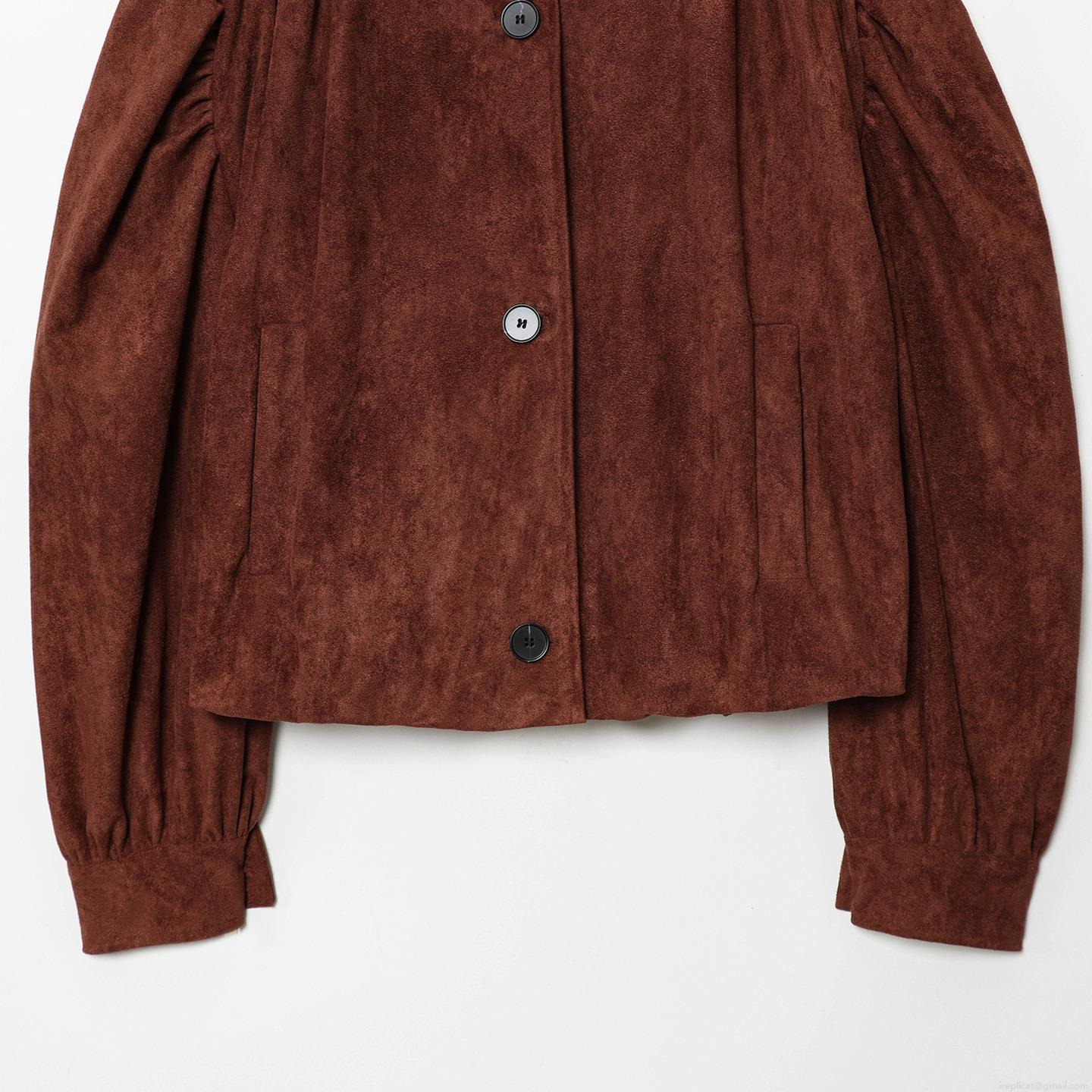 Women Fashion Faux Suede Jacket Vintage Pleated Puff Sleeve Stand Collar Button Up Short Coat Streetwear Solid Color Outwear For Ladies