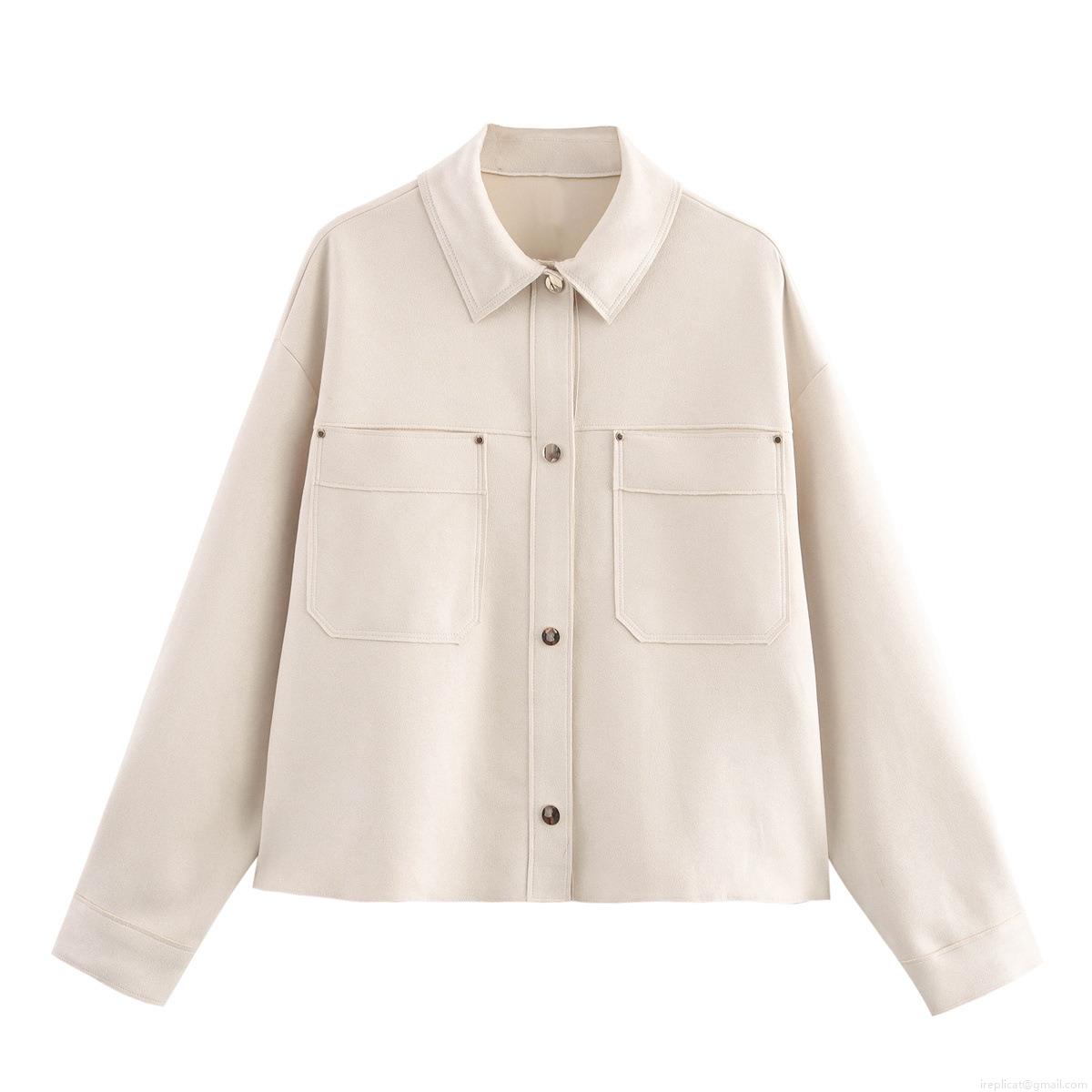 Women Fashion Faux Suede Shacket Jacket Leopard Print Solid Color Long Sleeve Button Down Shirt Outerwear With Dual Pockets Autumn Casual Coats For Women
