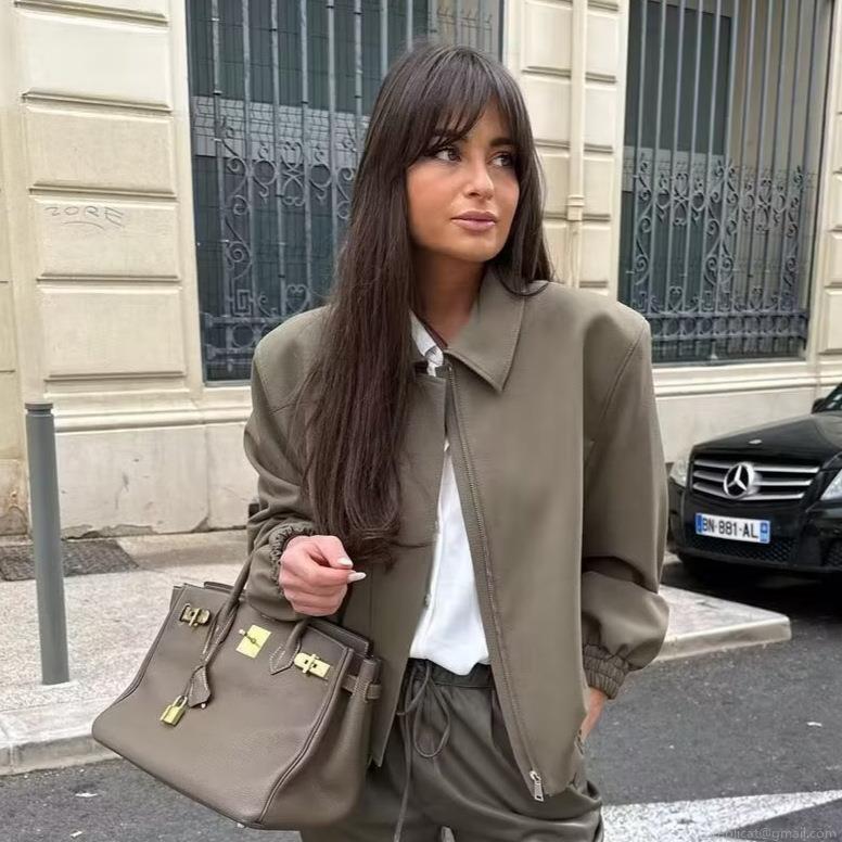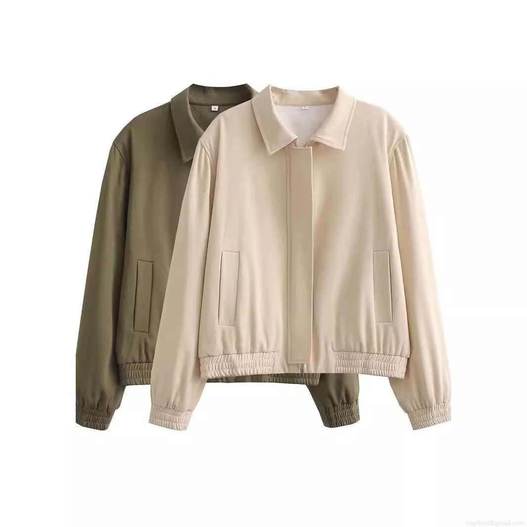 Women Fashion Lapel Collar Zipper Jacket Loose Solid Color Long Sleeve Baseball Uniform Outerwear Street Style Coat For Spring Autumn