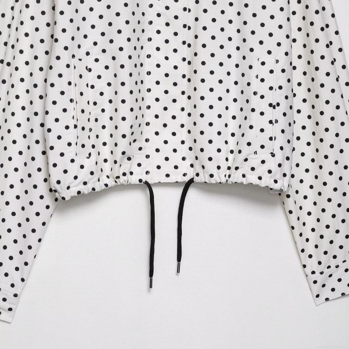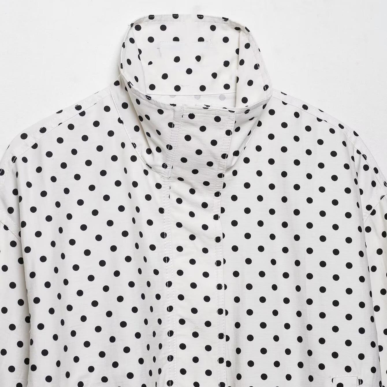 Women Fashion Polka Dot Stand Collar Jacket And Shorts Casual Loose Long Sleeve Zipper Coat With Pockets Summer Polyester Blend Outfit For Women