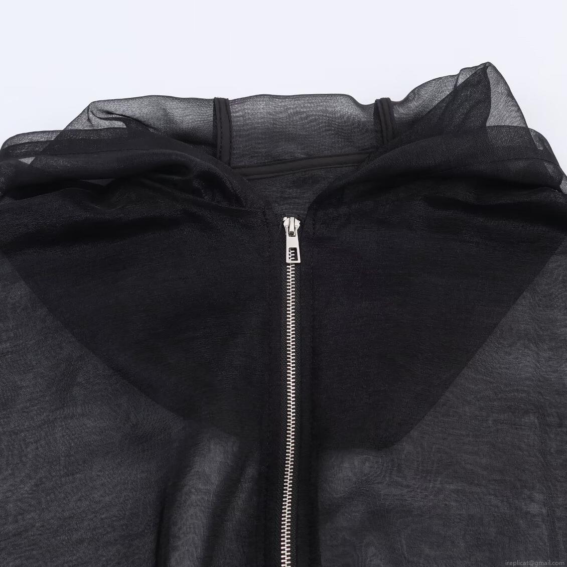Women Fashion Sheer Mesh Hooded Jacket Loose Casual Long Sleeve Full Zipper Lightweight Transparent Sun Protection Outerwear Coat For Ladies
