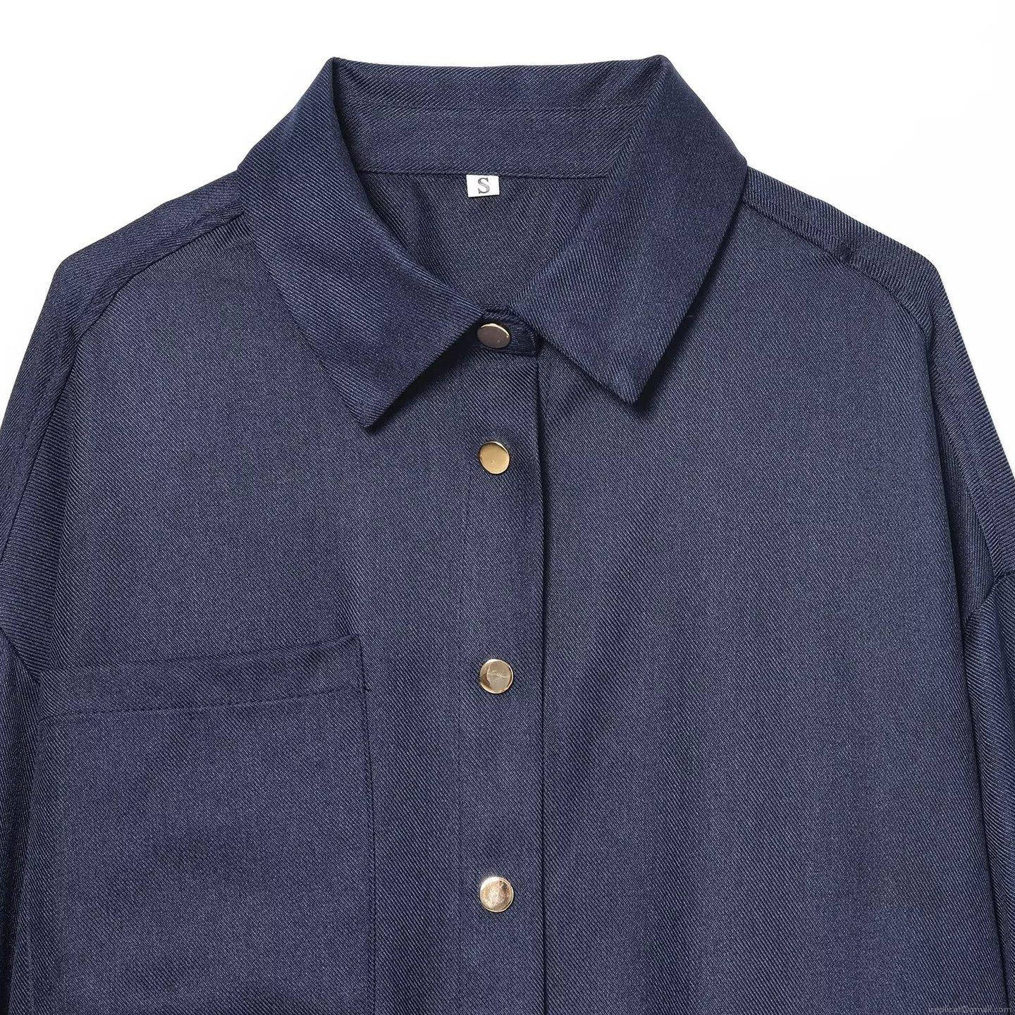 Women's Fashion Casual Denim Jacket Short Lapel Button Down Coat With...
