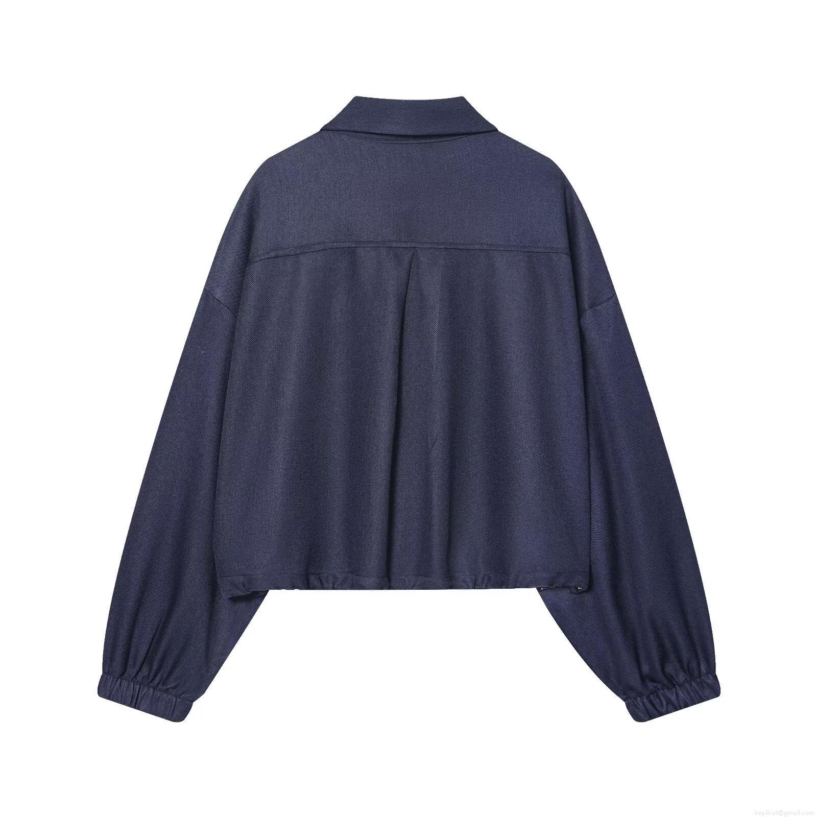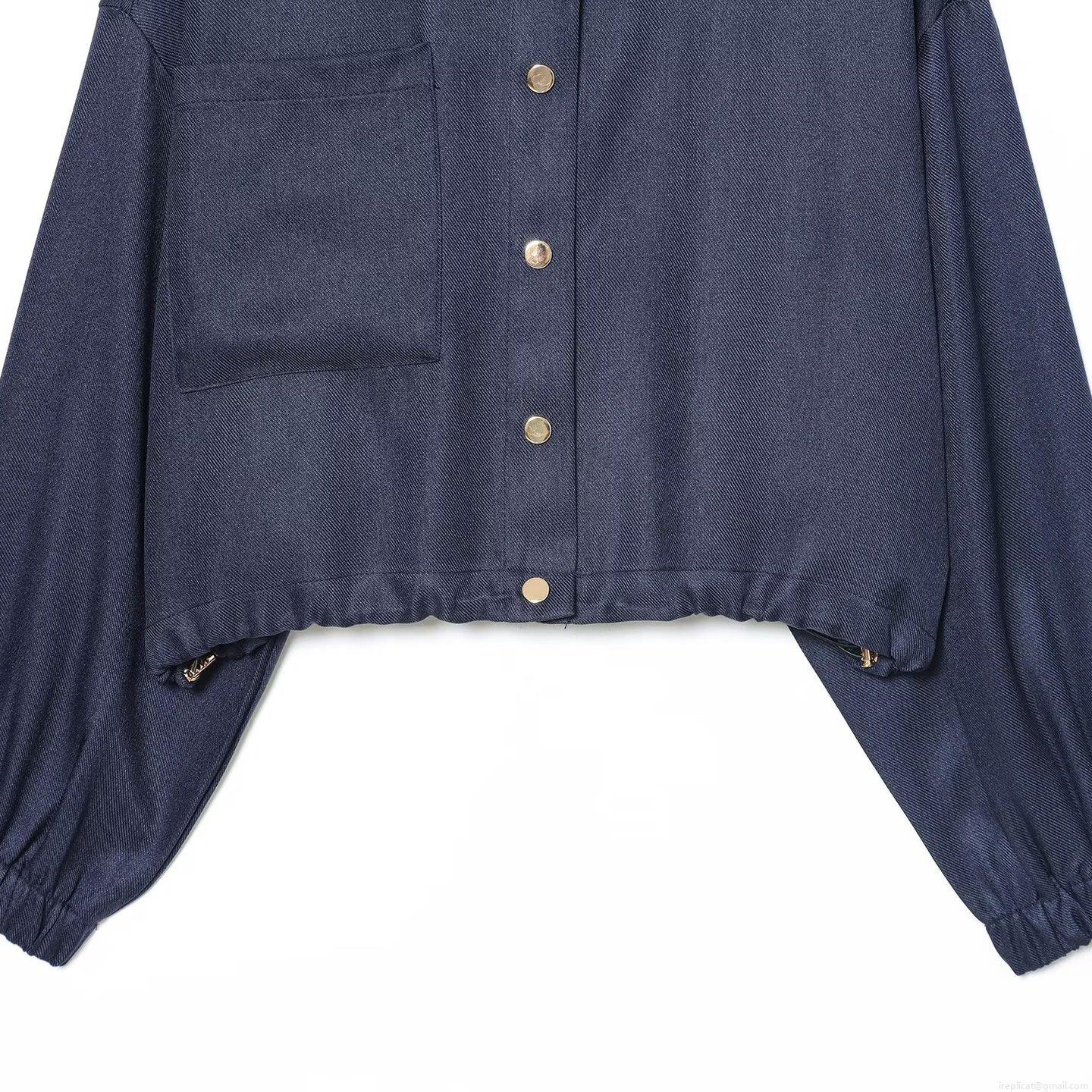 Women Fashion Short Jacket Casual Loose Solid Color Twill Fabric Coat With Gold Metal Buttons Work Utility Pocket Long Sleeve Outwear For Ladies Daily