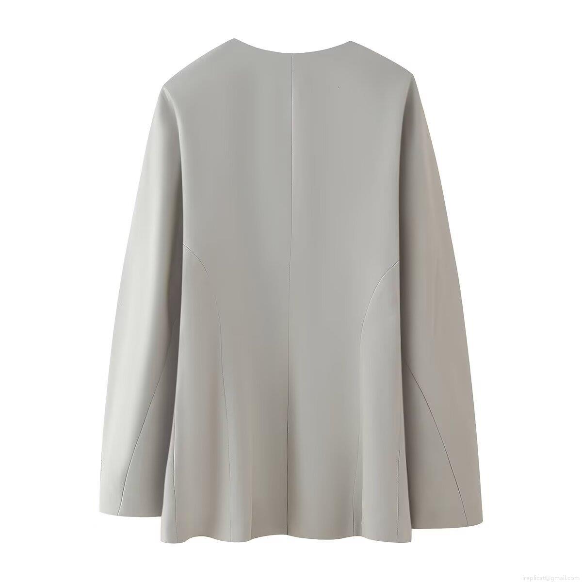 Women Fashion V-Neck Slim Fit Blazer Jacket 100% Polyester Solid Color Single Breasted Long Sleeve Mid Length Outerwear For Office Daily Streetwear Women