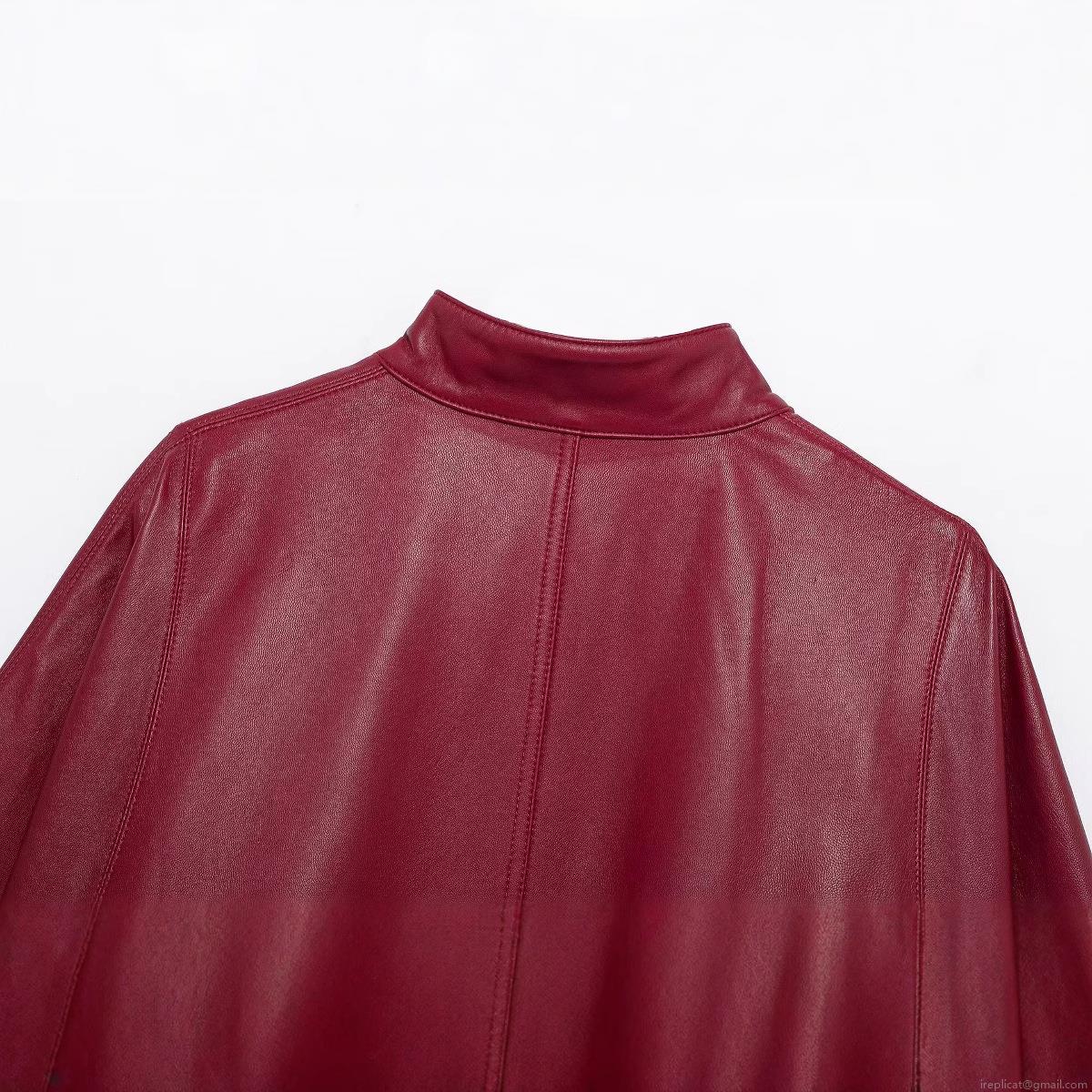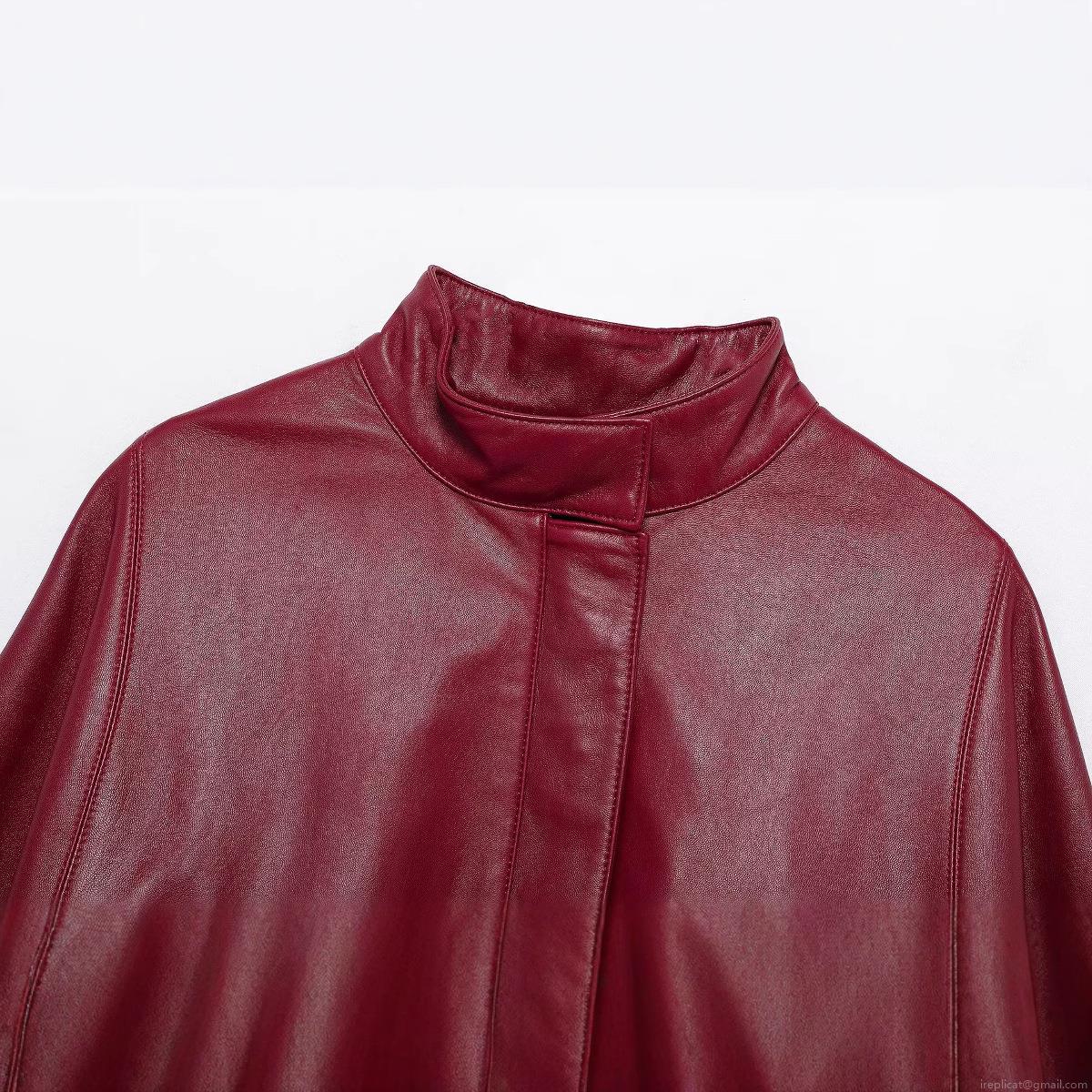 Women Fashion Wine Red Faux Leather Cloak Jacket Stand Collar Short Poncho Coat Streetwear Batwing Sleeve Zip-up Top Outerwear For Spring Autumn Casual Solid Color Leatherette Outerwear