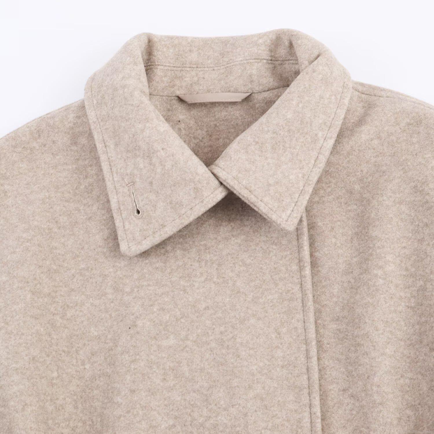 Women's Short Wool-Like Jacket Turn-Down Collar Single Breasted Solid...