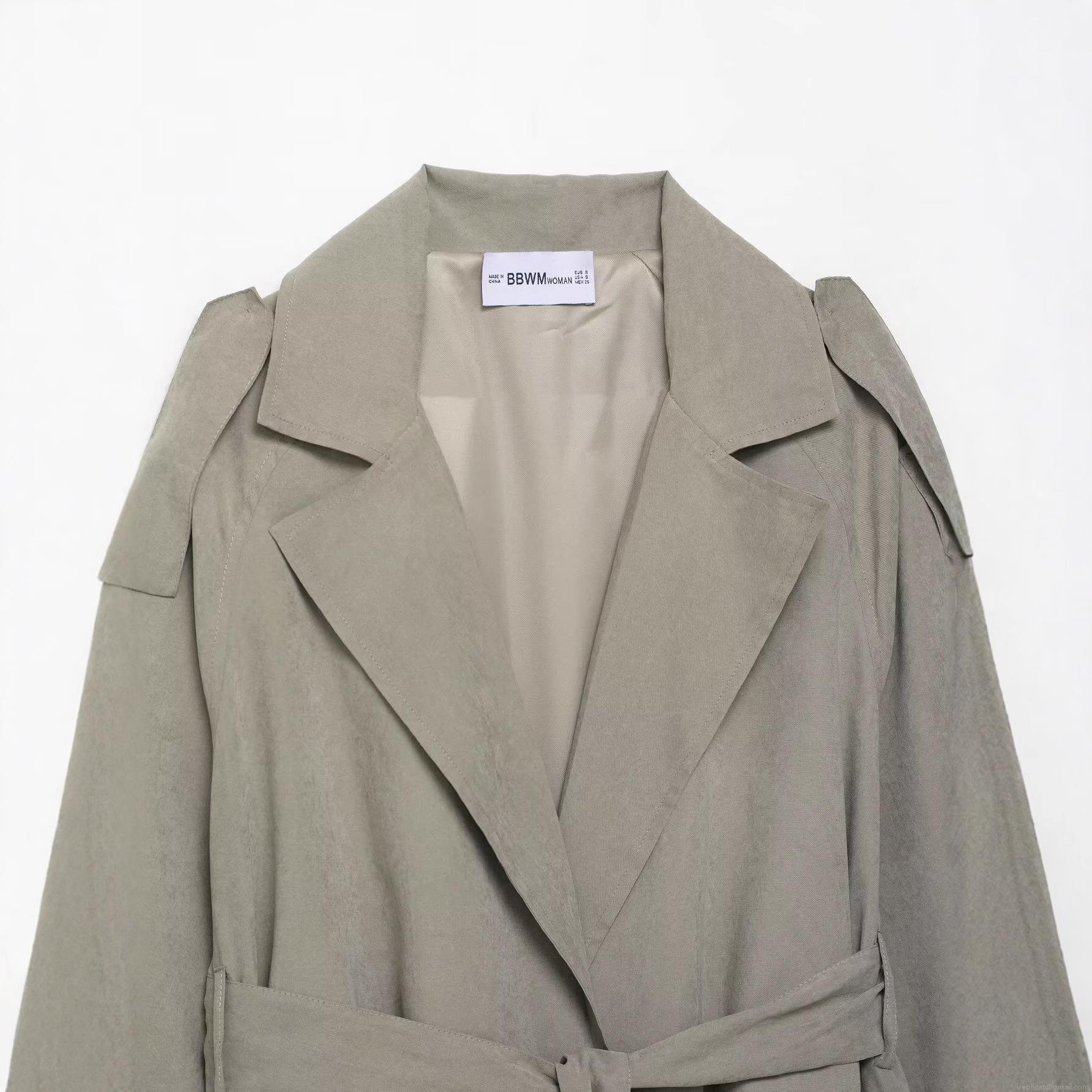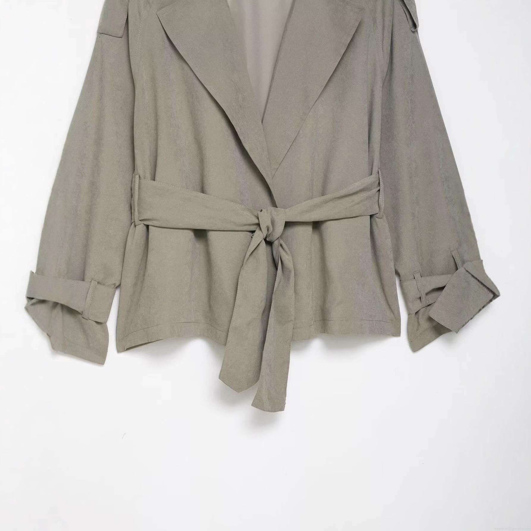 Women Faux Suede Short Trench Coat Jacket With Lapel Lace-up Waist Long Sleeve Elegant Casual Outerwear For Fall Spring Female Fashion Top