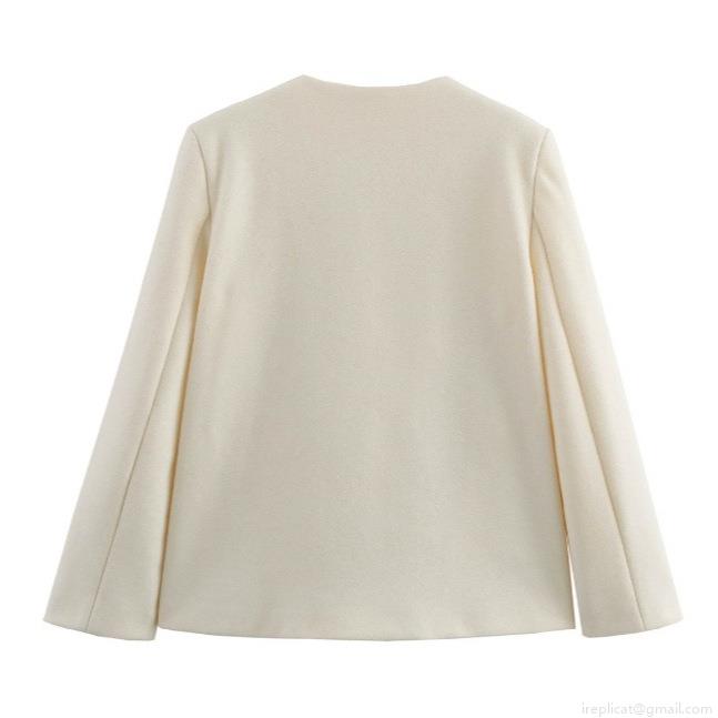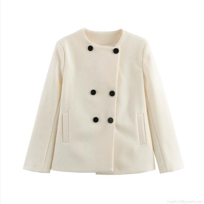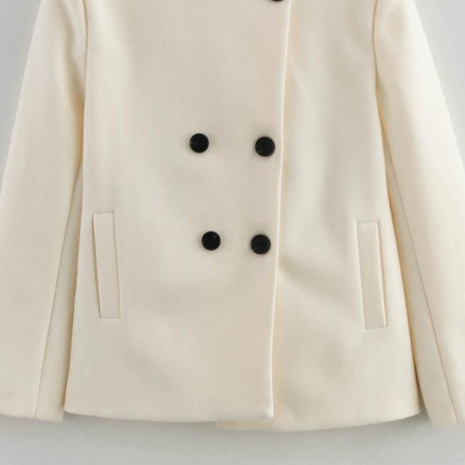 Women Elegant Stand Collar Short Woolen Jacket Single Breasted Solid...