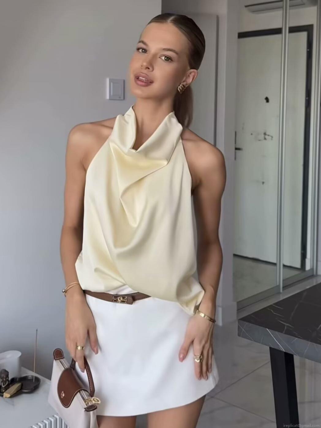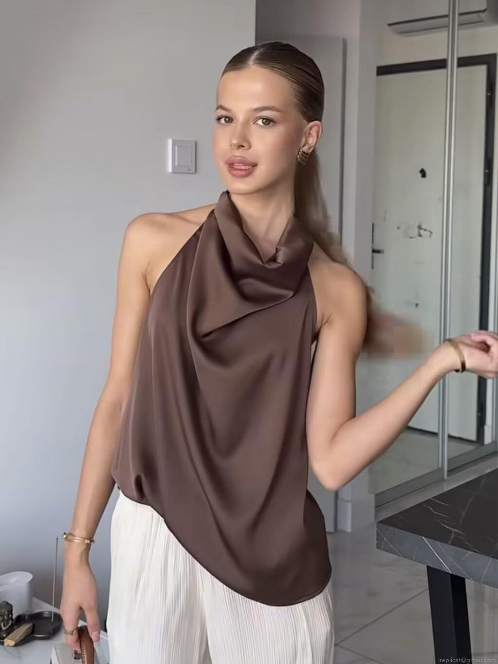 Women Halter Neck Backless Satin Top Sexy Sleeveless Solid Color Polyester Shirt For Summer Vacation Party Elegant Streetwear Blouse