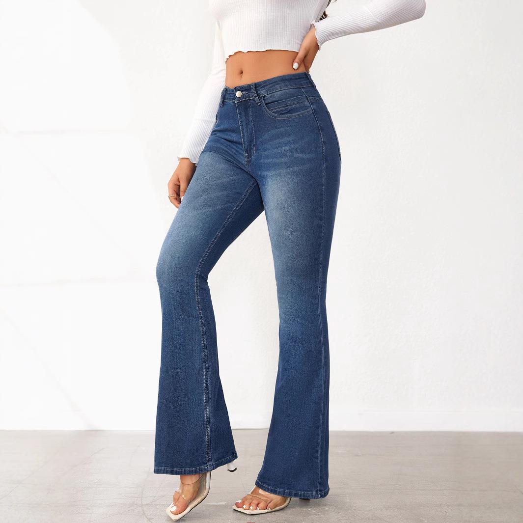 Women High Waist Flare Jeans Distressed Washed Denim Bell Bottom Pants Stretch Slim Fit Long Trousers For Casual Daily Streetwear Retro Style