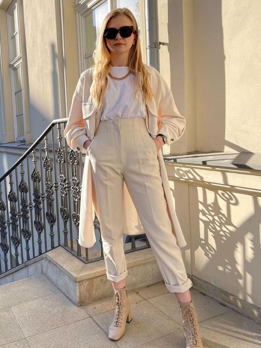Women's Elegant High Waist Straight Leg Suit Pants With Brown Belt...