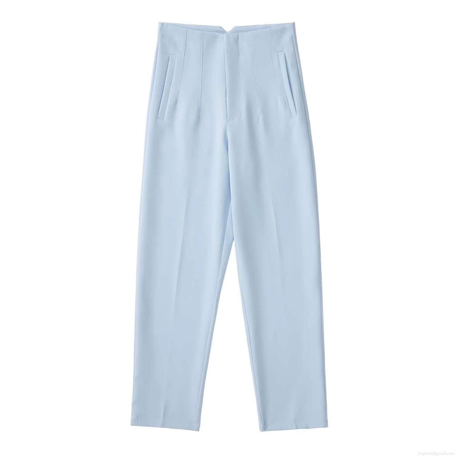 Women High Waist Straight Leg Trousers 95% Polyester Office Casual Dress Pants Work Solid Color Striped Long Trousers For Women Lady Commuting Fashion