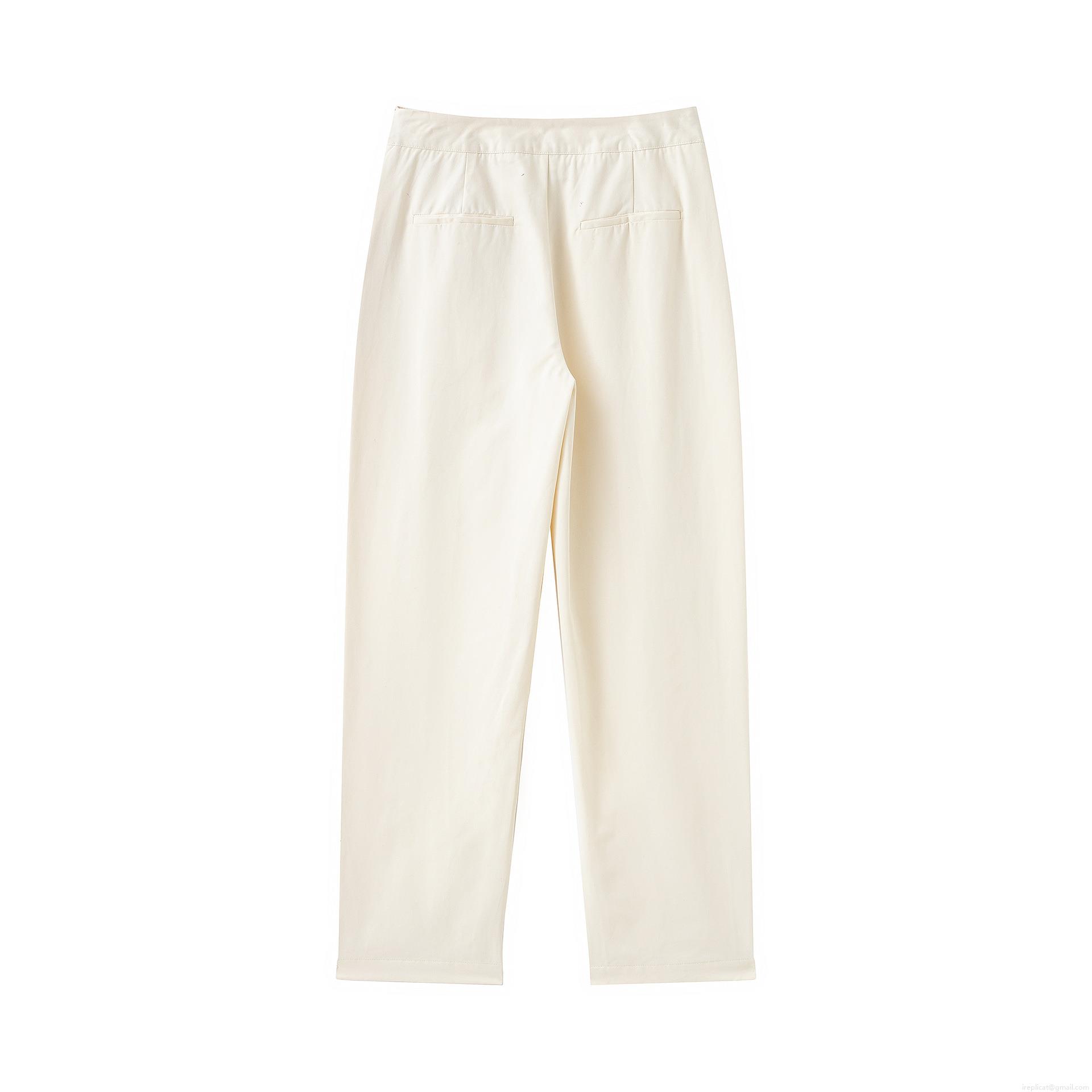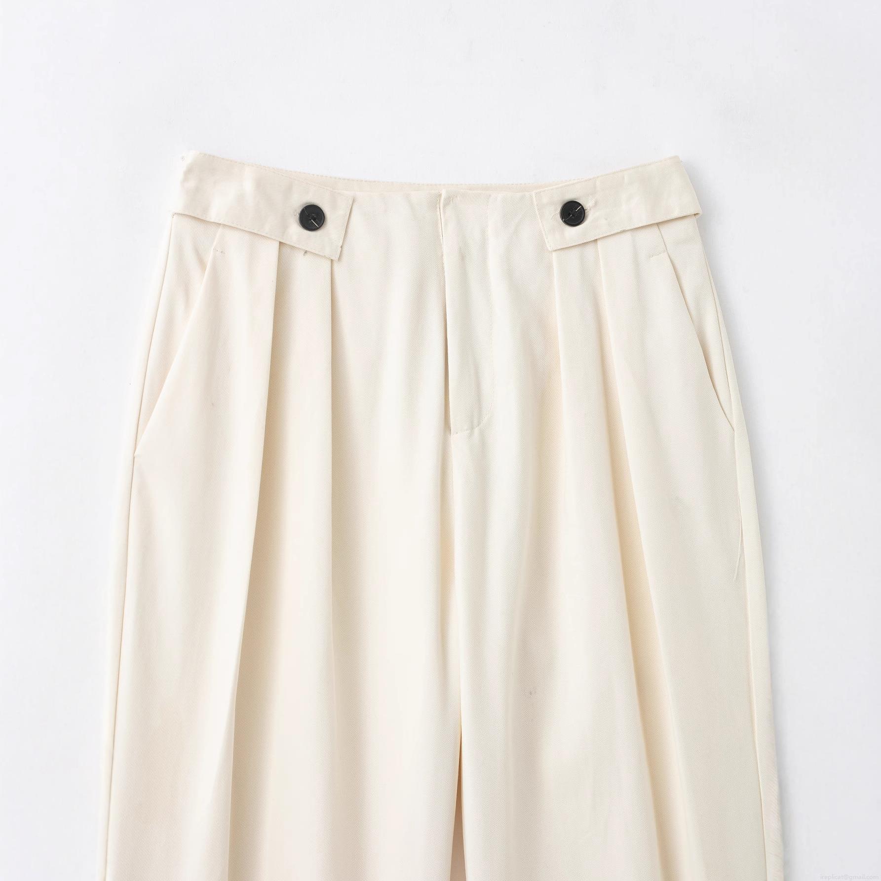 Solid Color, Slanted Pocket, Pleated Design, Waist Buttons
