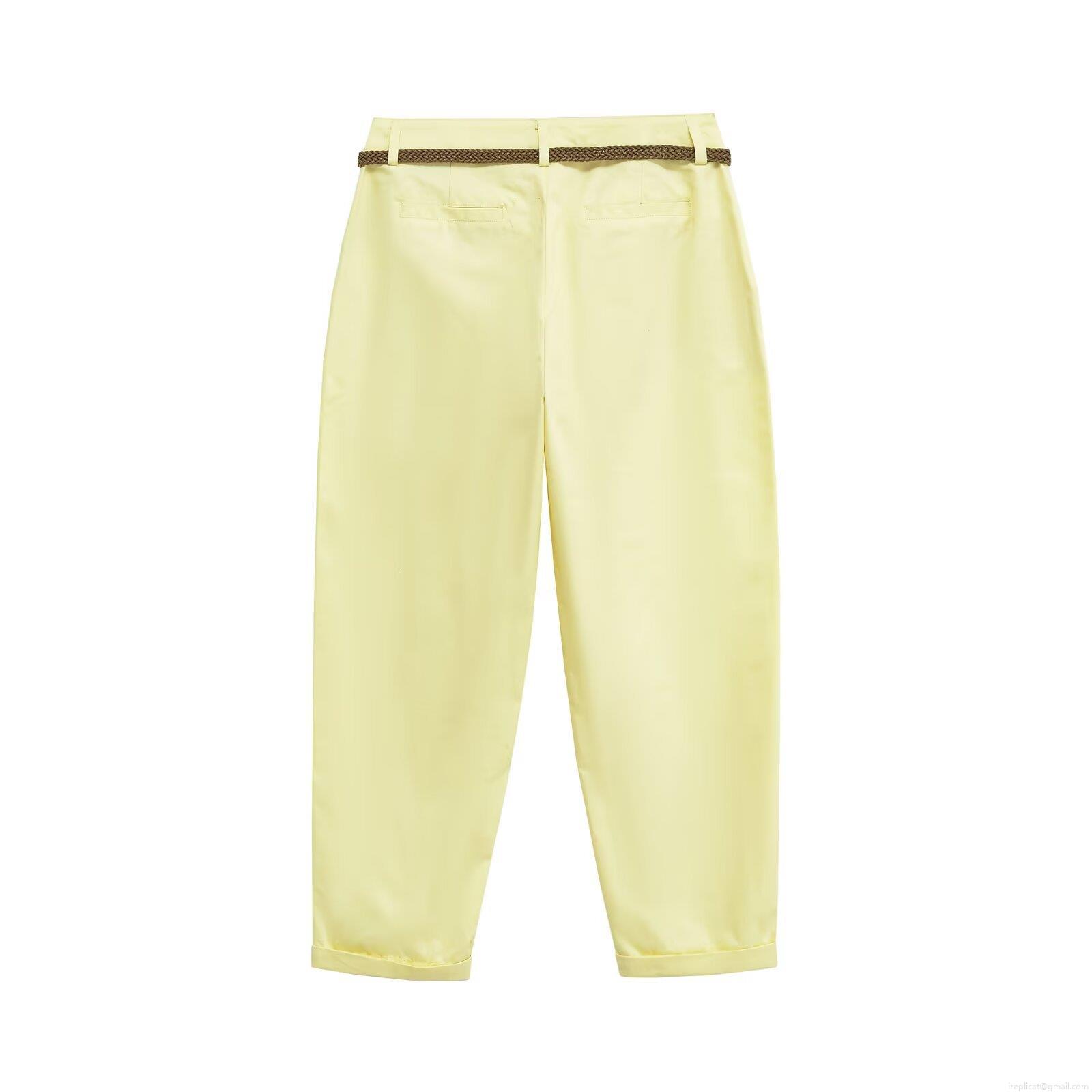 Solid Color, High-waisted, Conical Design, Rolled-up Trouser Legs, Woven Belt