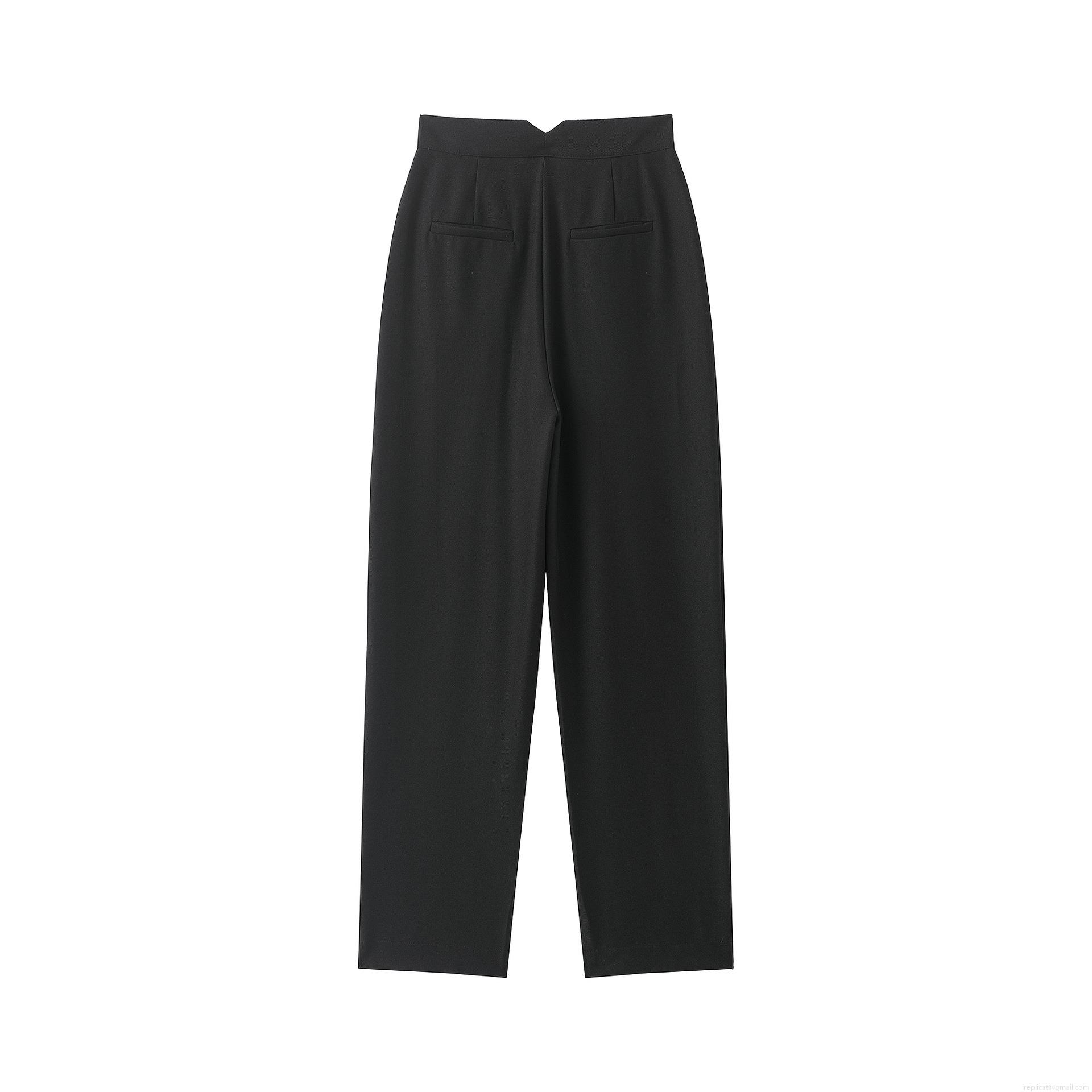 Women High Waist Wide Leg Dress Pants 100% Polyester Pleated Front Trousers Elegant Office Lady Loose Casual Long Slacks With Pockets Solid Black Trousers