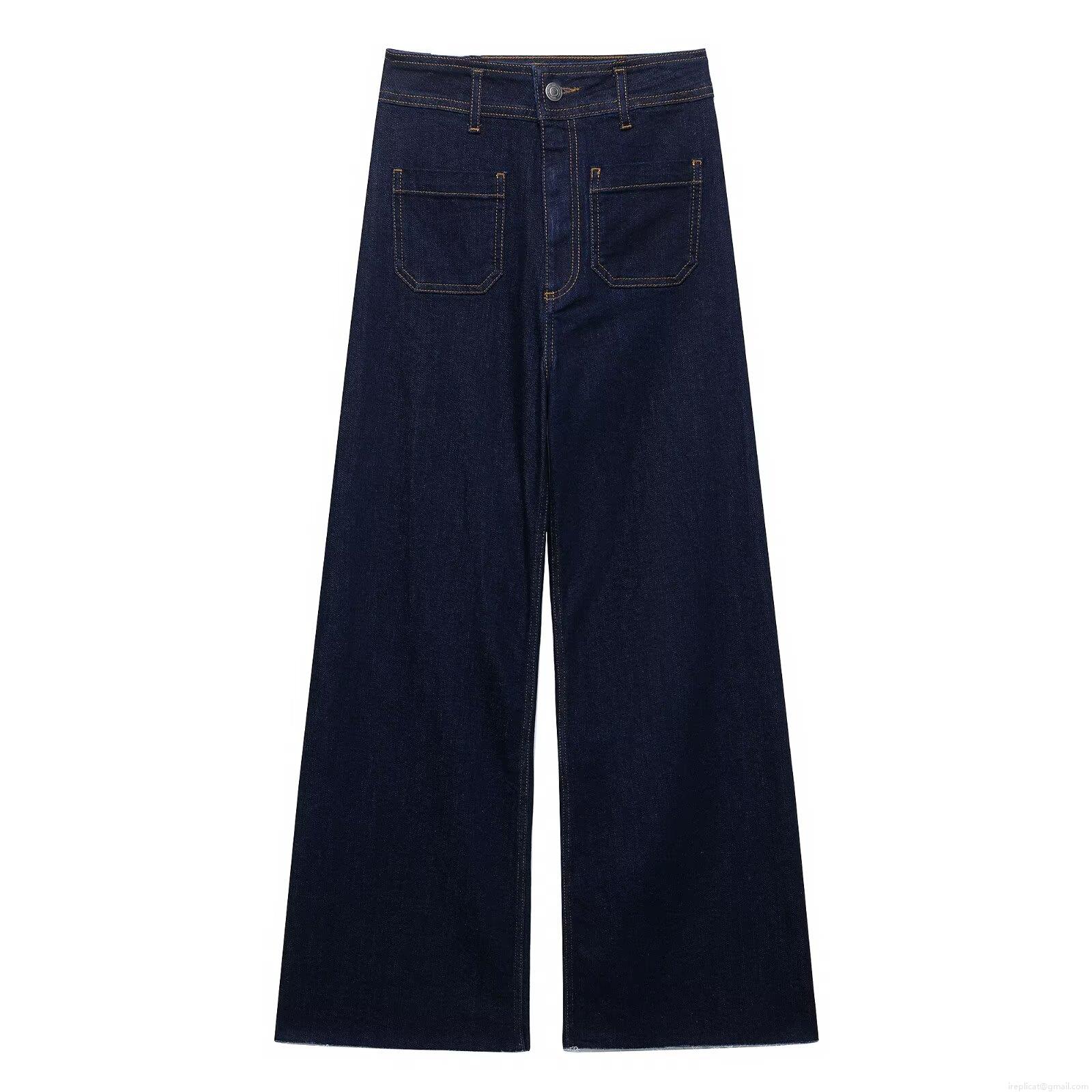 Women High Waist Wide Leg Jeans Summer Casual Streetwear Patchwork Raw Hem Elastic Polyester Denim Trousers For Ladies Loose Straight Fit Long Pants