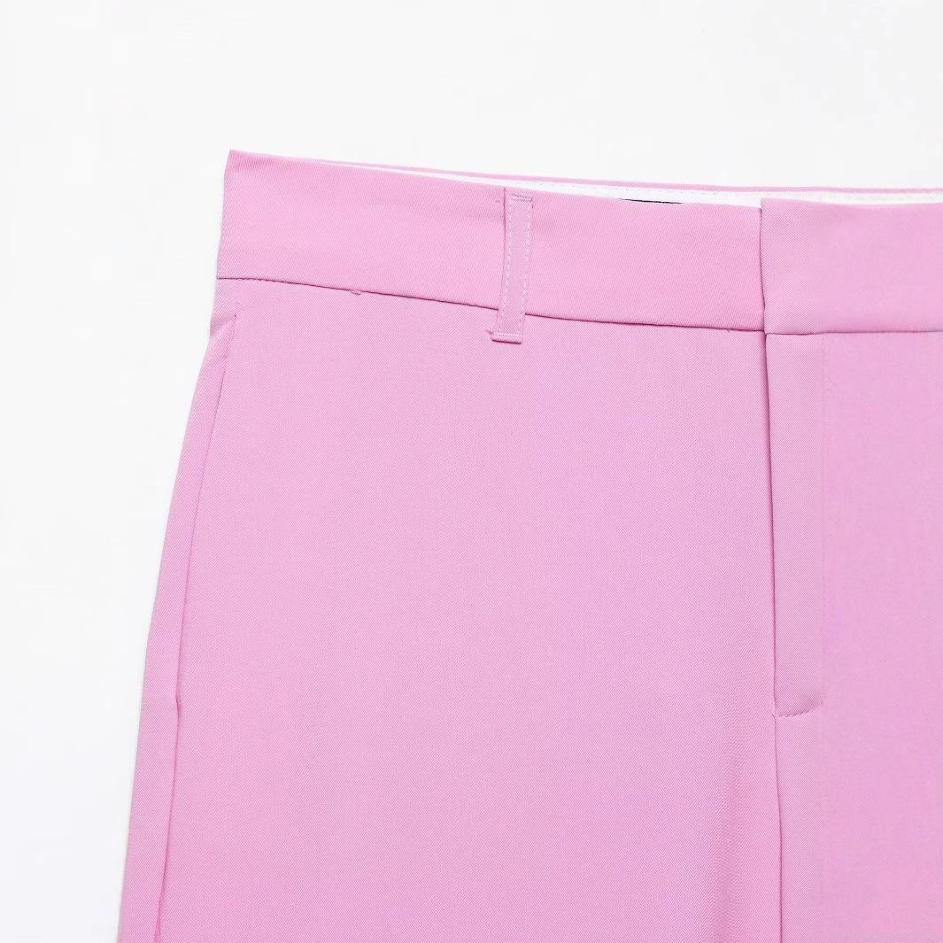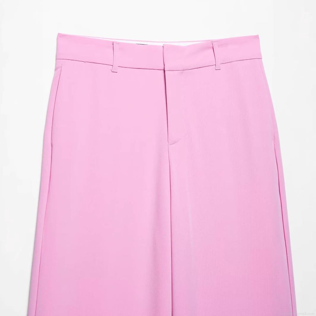 Women High Waist Wide Leg Suit Pants Elegant Bright Pink Polyester Tech Fabric Trousers Loose Straight Dress Slacks For Office Lady Spring Summer Solid Color Long Bottoms