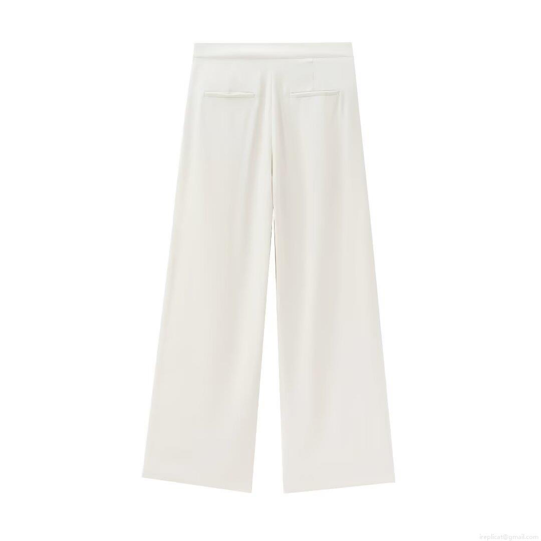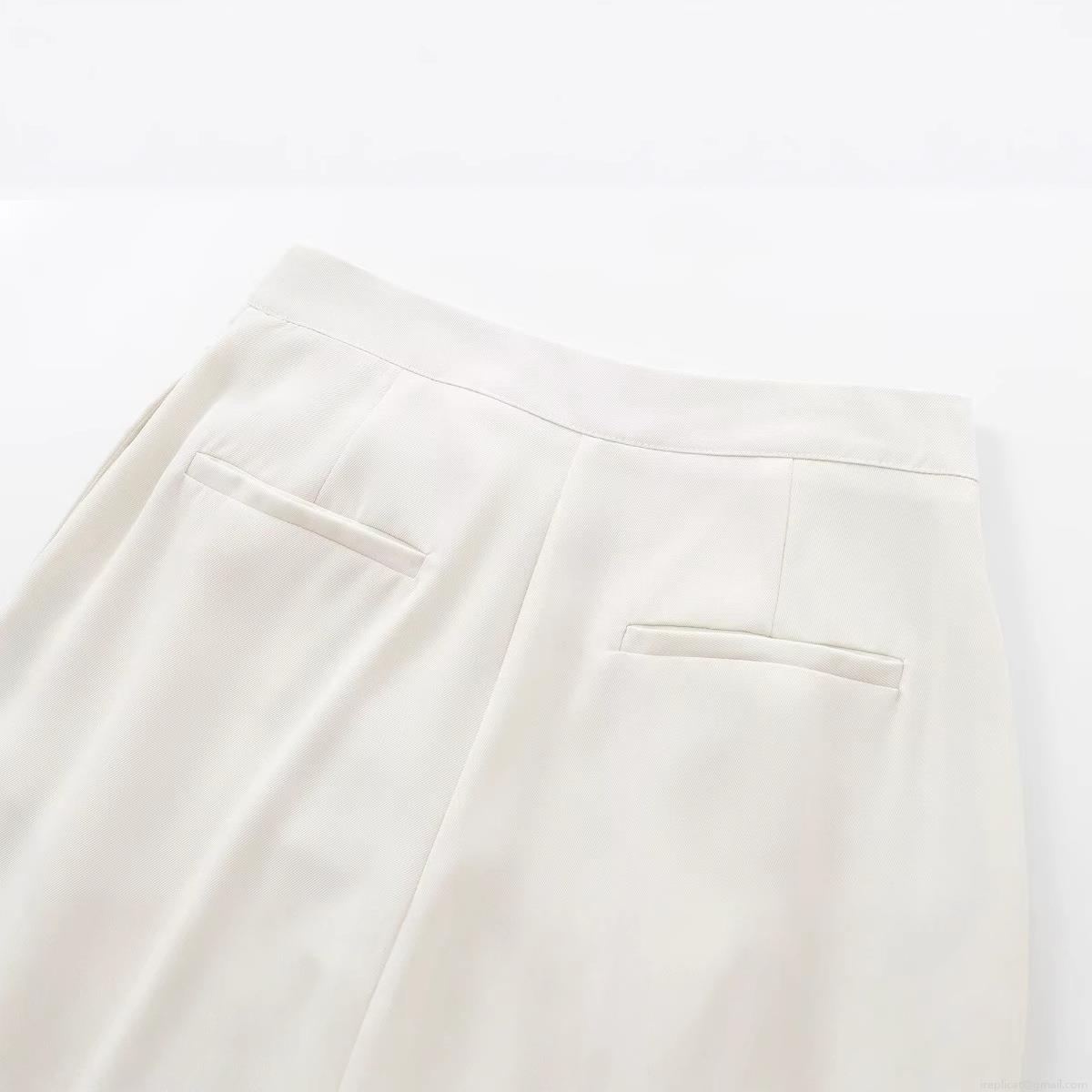 Women High Waist Wide Leg Trousers Elegant Polyester Twill Fabric Tied Bow Belt Solid Creamy White Casual Office Workwear Fashion Loose Full Length Pants