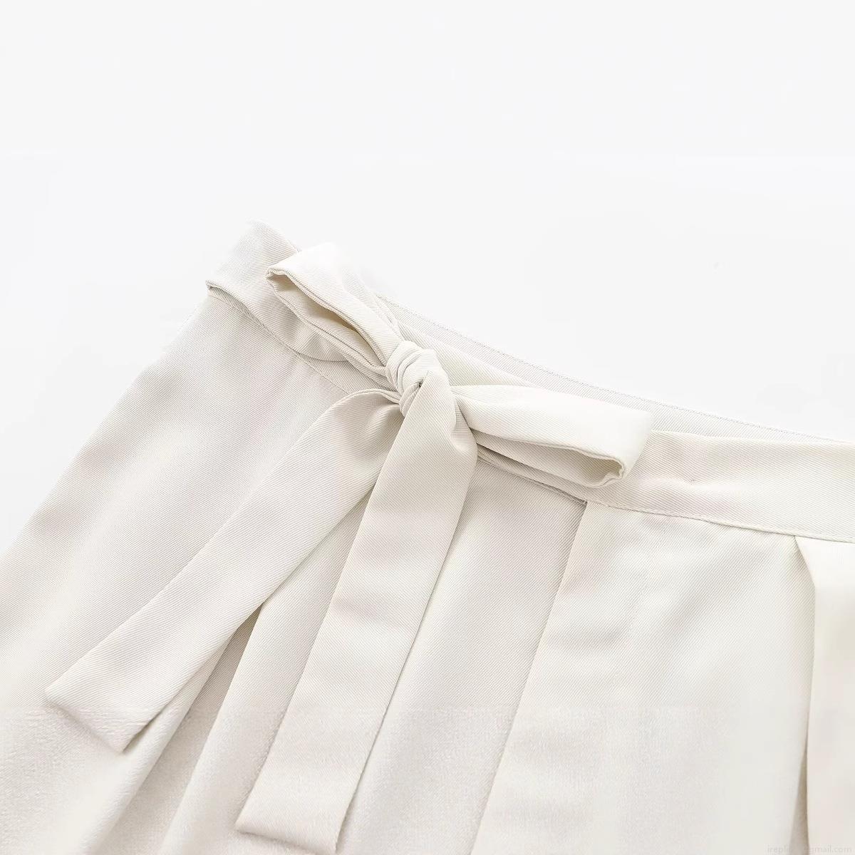 Solid Color, Ribbon Bow, High-waisted Pleats