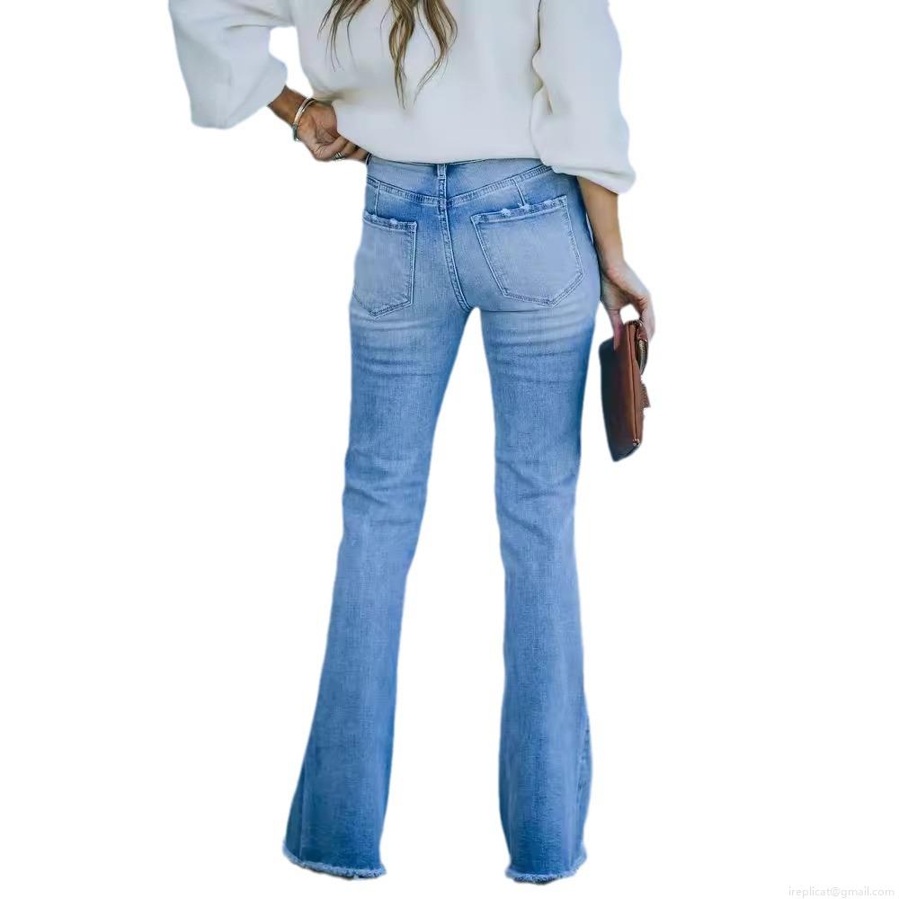 Solid Color, Tassel, Rough Edges, Water Washing Process, Water Washing And Whitening, Flared Trouser Legs