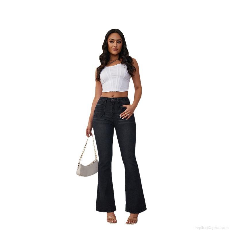 Women High Waisted Micro Flare Jeans Slim Fit Washed Denim Cotton Blend Pants With Front Patch Pockets Fashion Streetwear Flared Leg Trousers