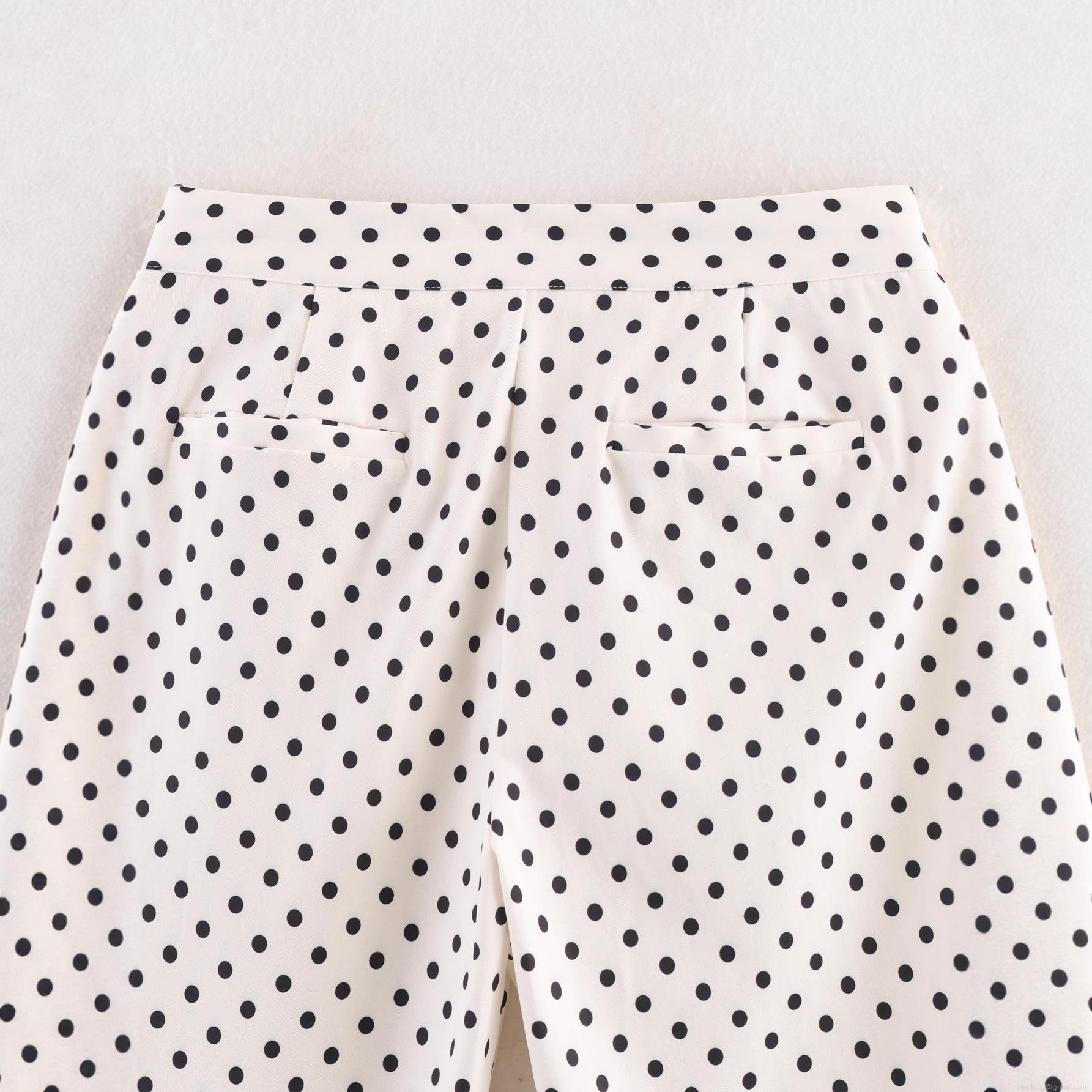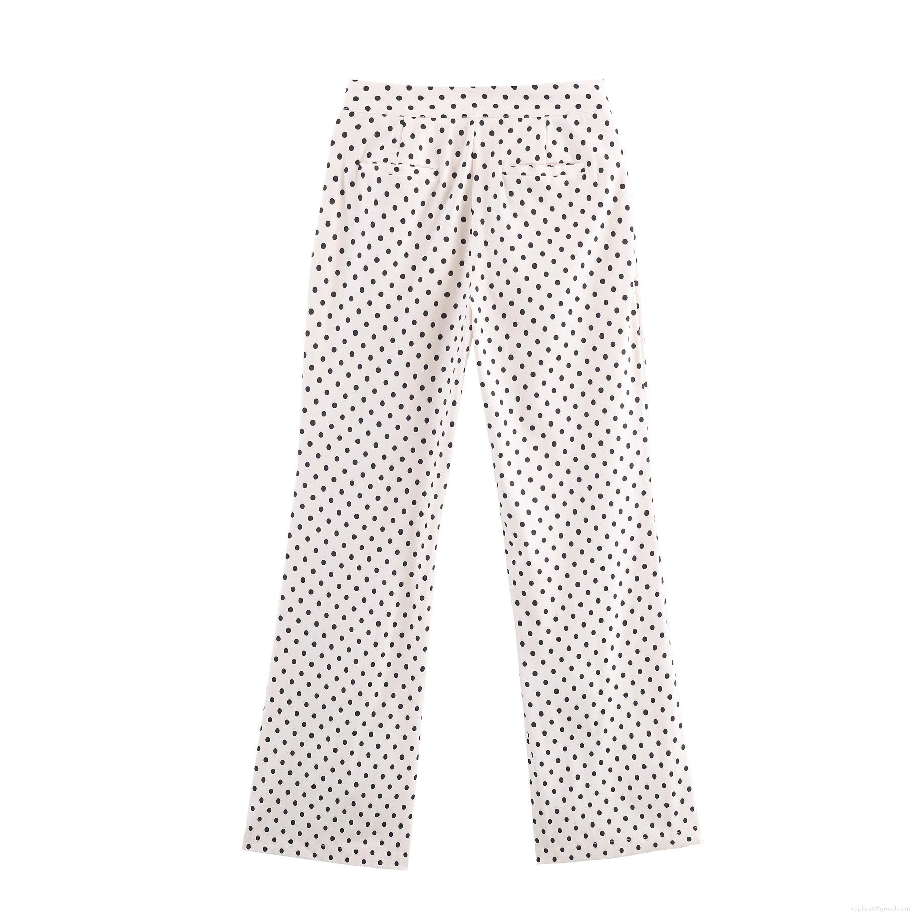 Women High Waisted Polka Dot Print Straight Leg Pants Casual Long Trousers 100% Polyester Flowy Wide Leg Pants For Women Daily Fashion Retro Style Soft Breathable Bottoms