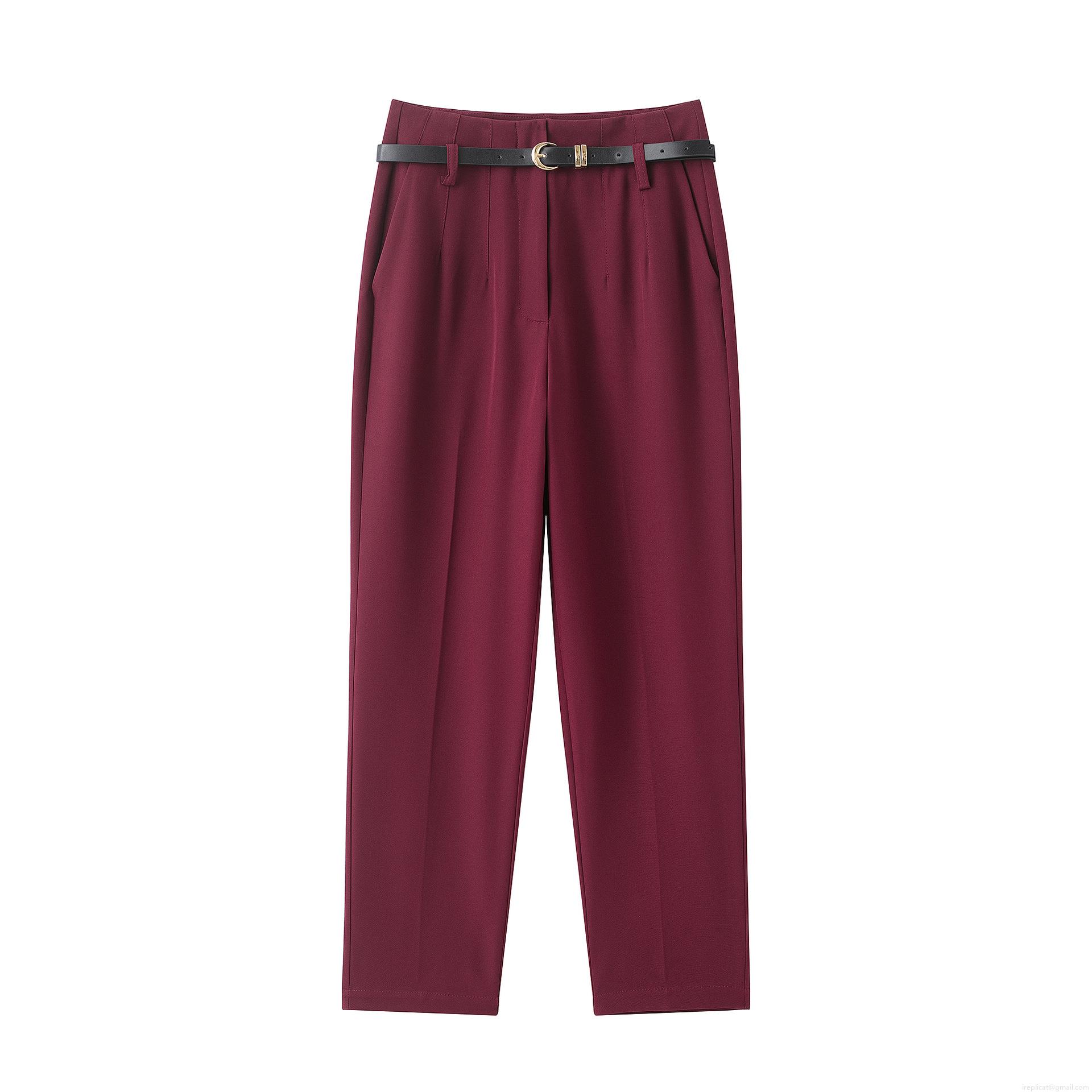 Women High Waisted Suit Pants With Belt Polyester Tapered Trousers Office Work Wear Solid Color Elegant Slim Fit Dress Pants For Women