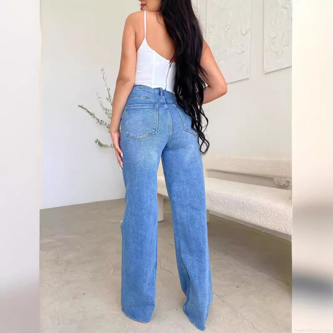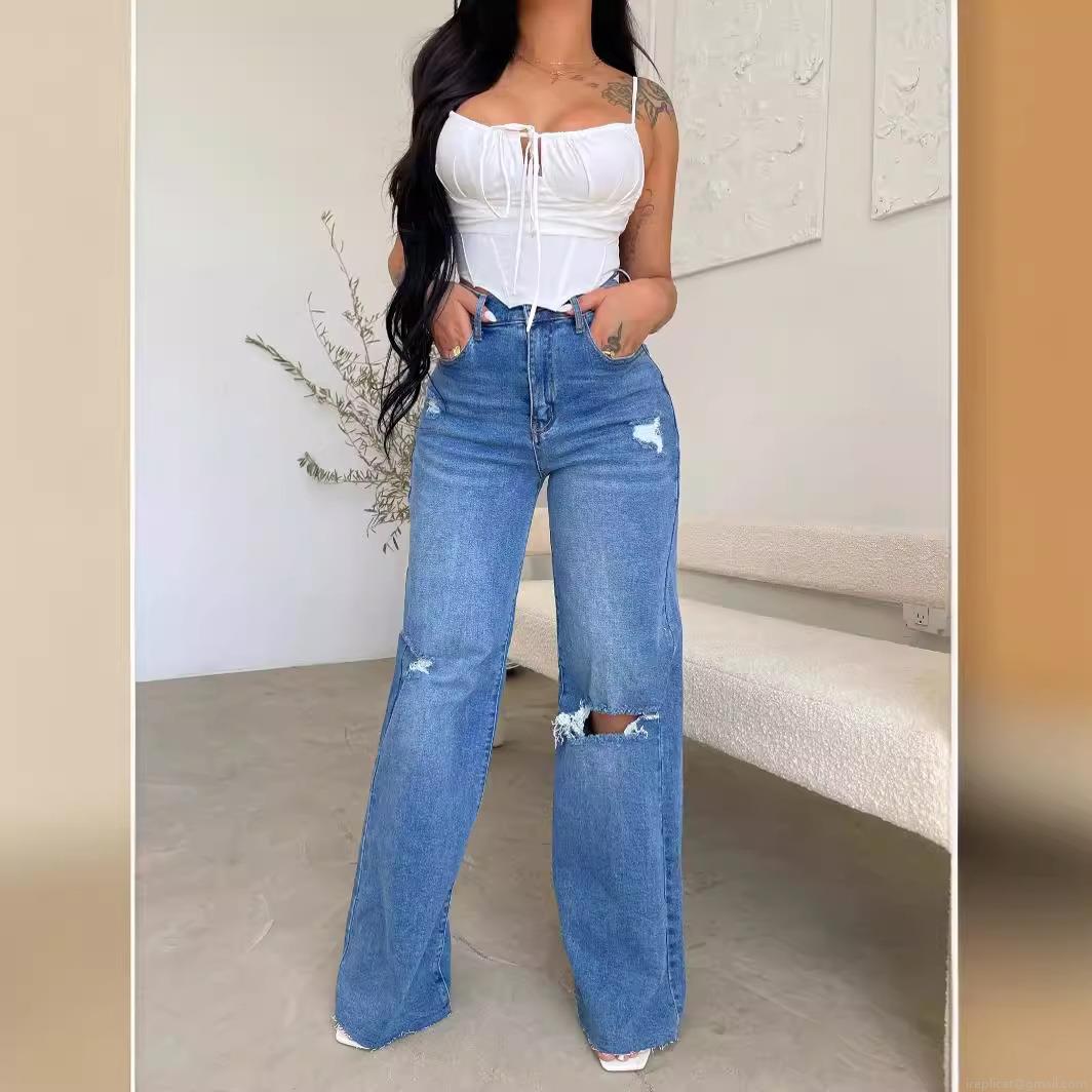 Women High Waisted Wide Leg Jeans Ripped Distressed Denim Pants Loose Baggy Straight Leg Trousers Casual Full Length Denim Jeans For Women