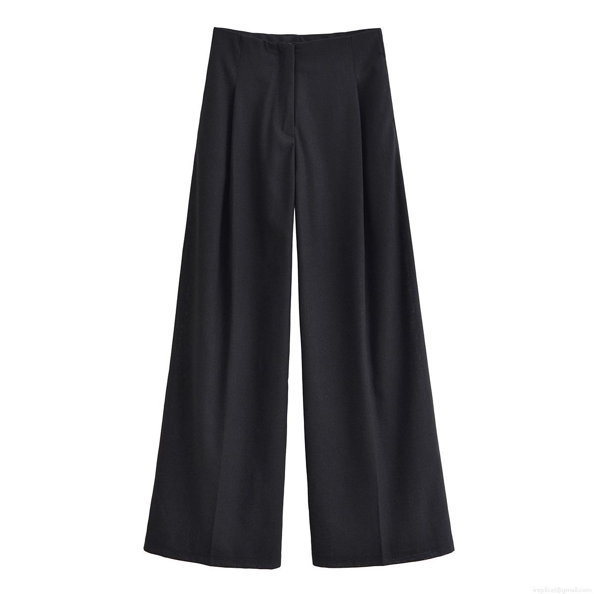 Women's Solid Color Wide Leg Pants 100% Polyester High Waisted...