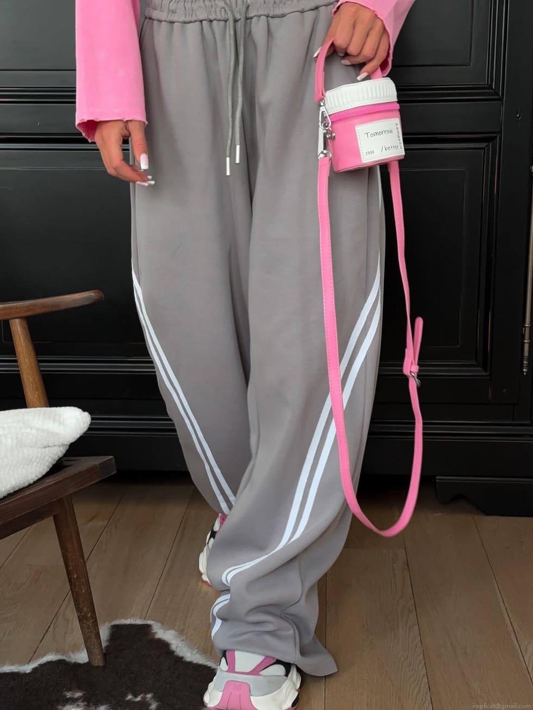 Hole, Drawstring, Wide-leg, High-waisted, Side Stripes, Strip