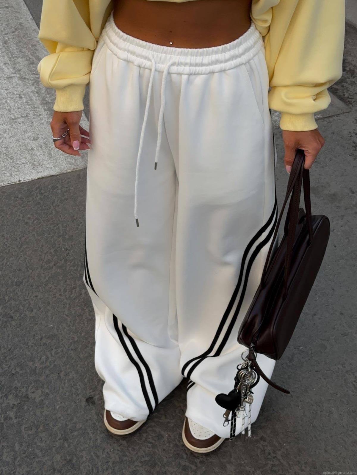 Women's Casual Wide Leg Pants Contrast Side Stripe Elastic Drawstring...