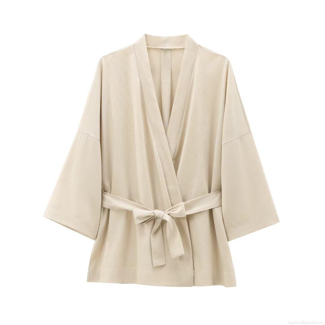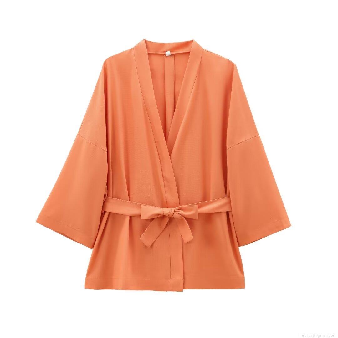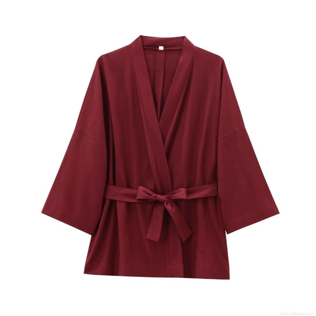 Women Kimono Cardigan Jacket V Neck Solid Color Belted Tie Waist Polyester Loose Fit Mid Length Long Sleeve Outwear For Casual Daily Streetwear