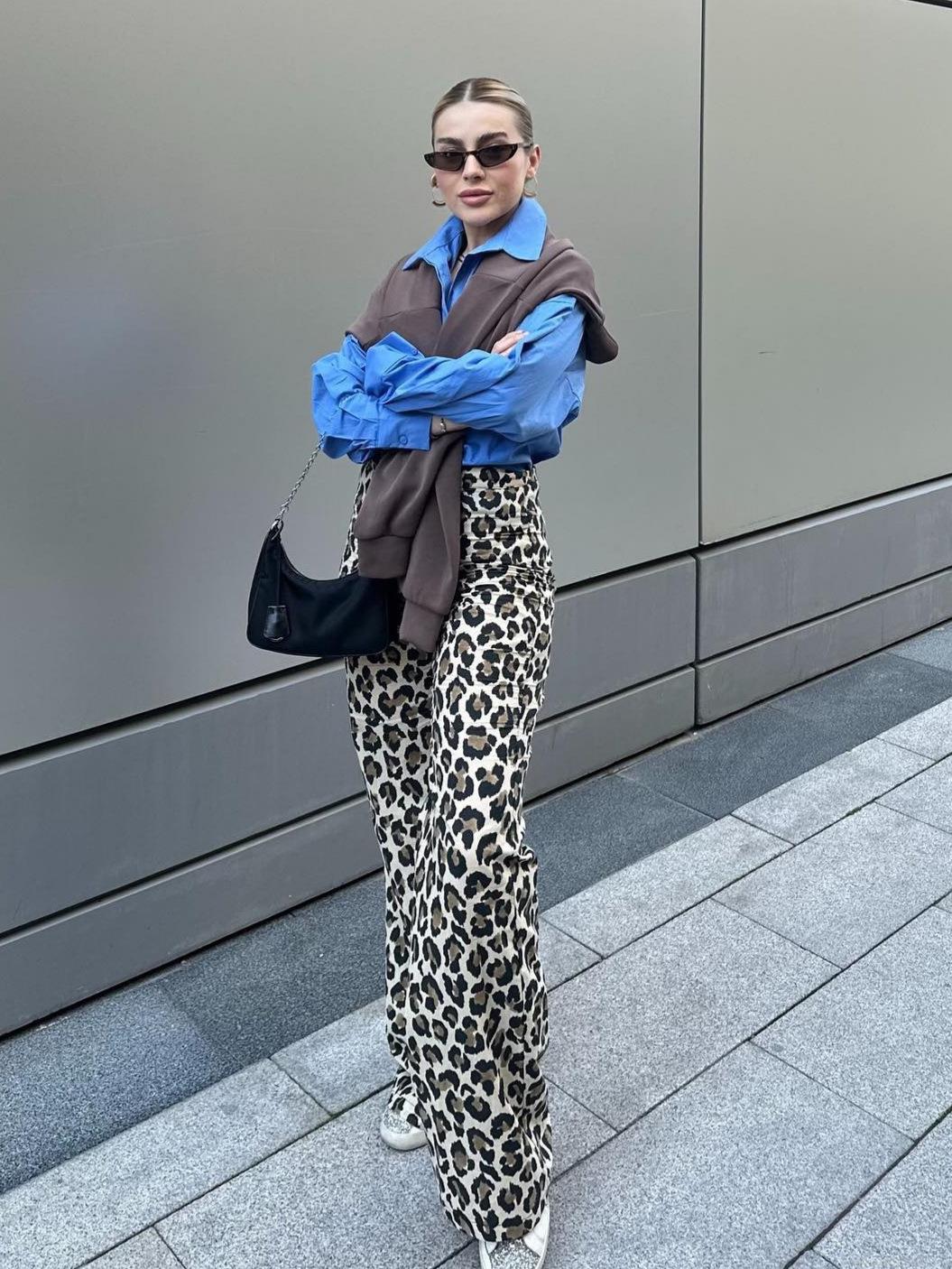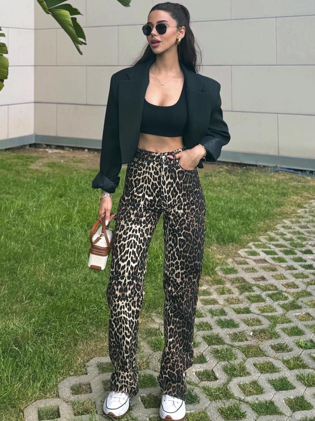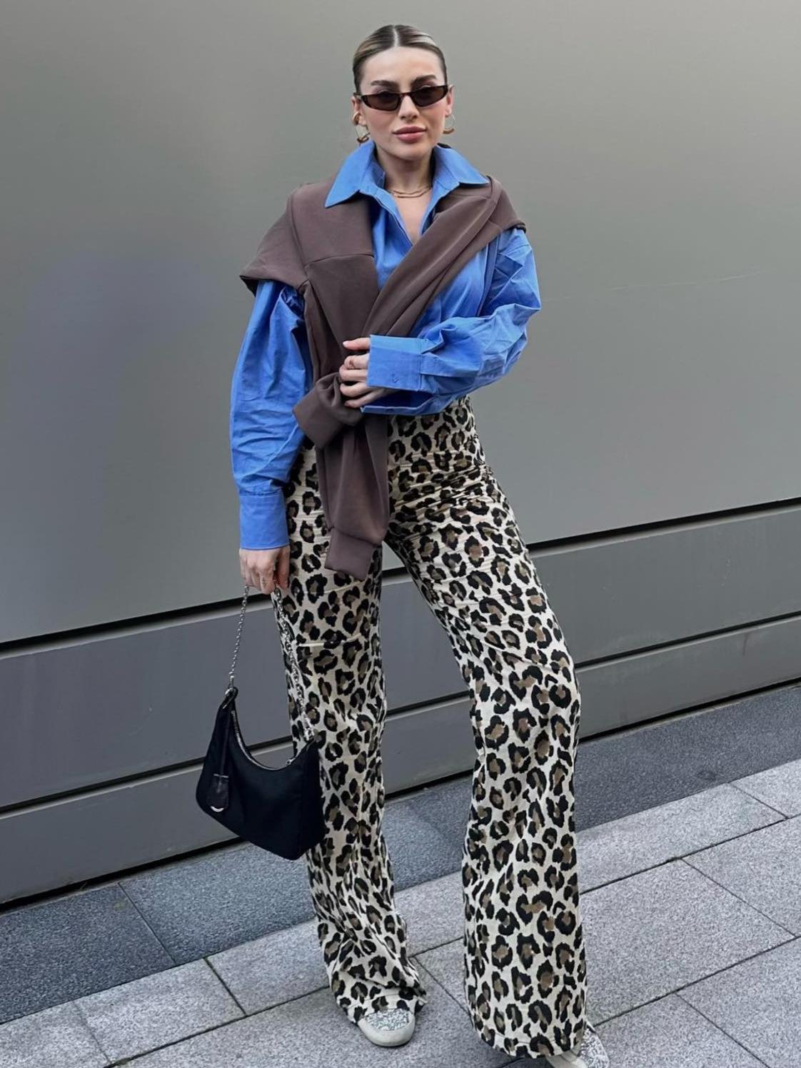 Women Leopard Print High Waisted Straight Leg Pants Casual Polyester Animal Pattern Long Trousers For Streetwear Vacation Autumn Summer Fashion