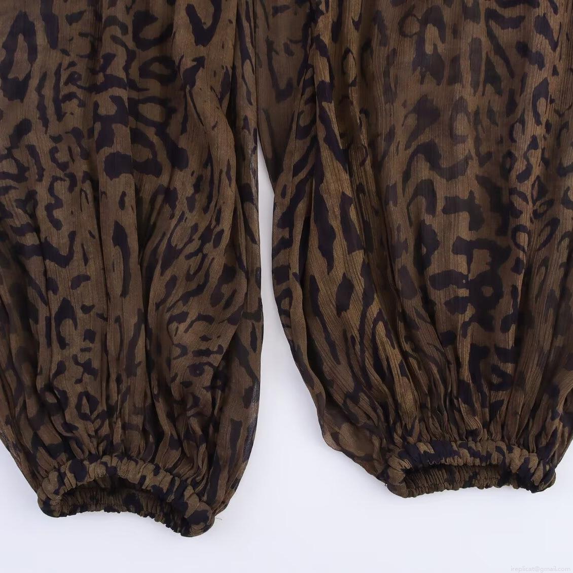 Women Leopard Print Pleated Lantern Pants High Waist Loose Casual Harem Trousers Fashion Animal Pattern Elastic Waist Trousers Streetwear For Women