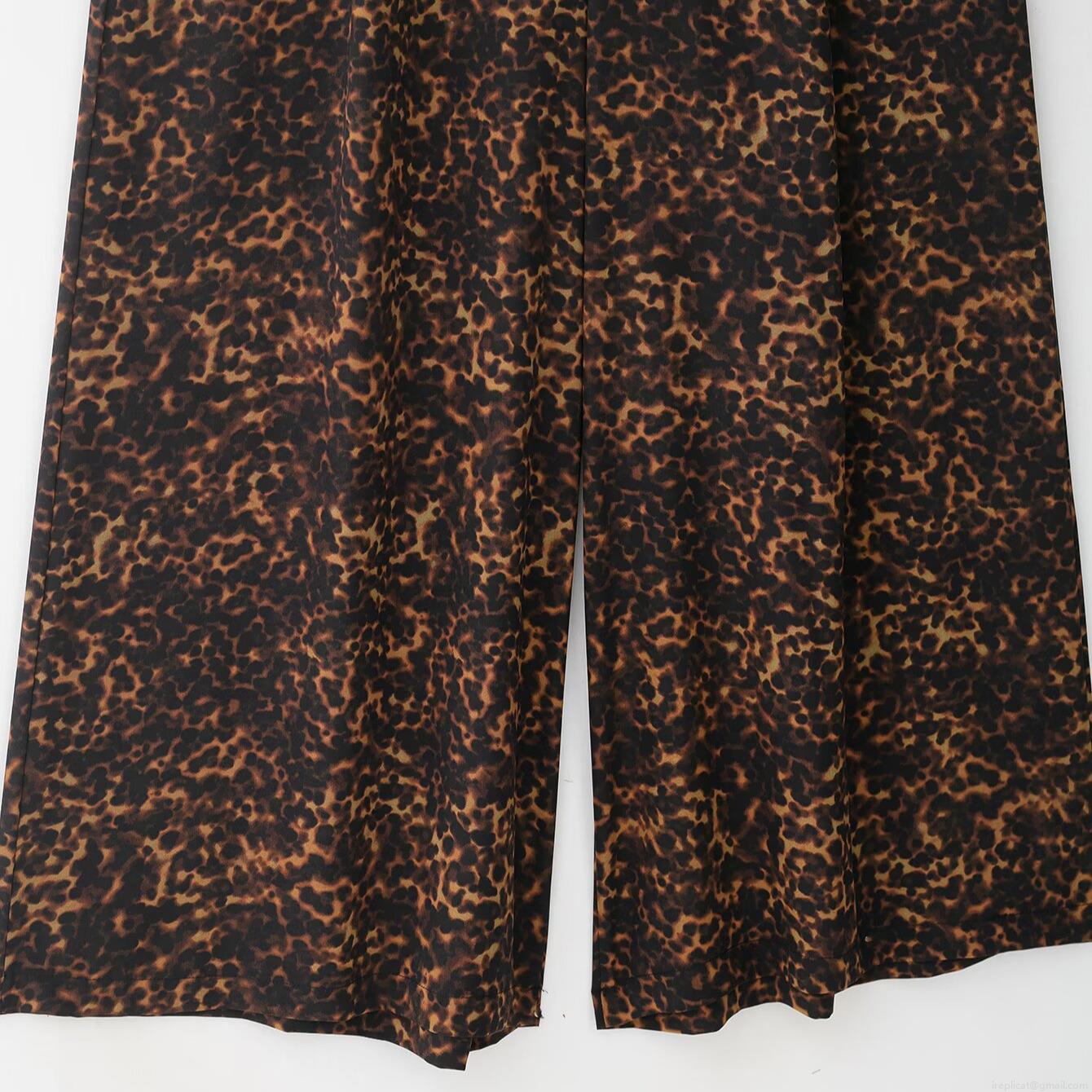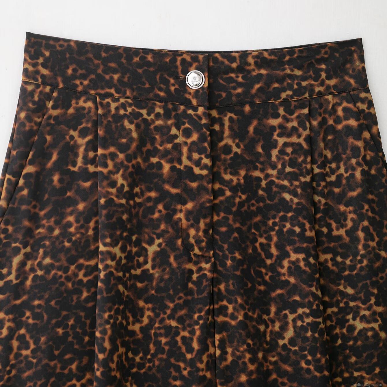 Leopard Print, Pleats, Printing, Metal Buckle, Wide-leg