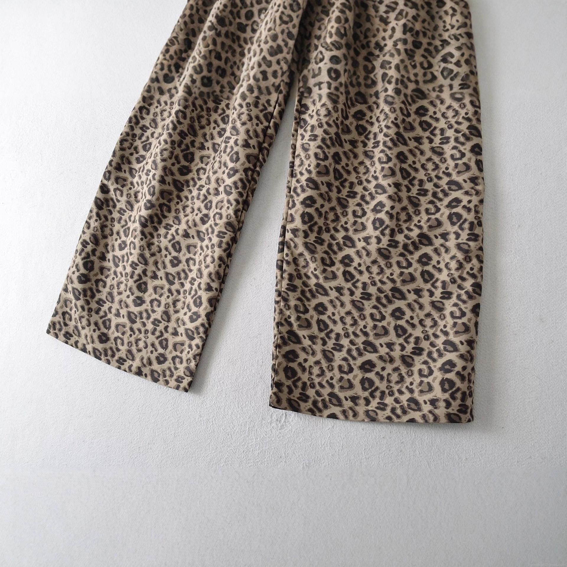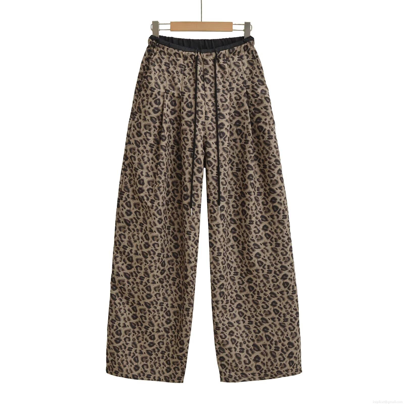 Women Leopard Print Wide Leg Pants Polyester Drawstring High Waist Casual Trousers Autumn Streetwear Fashion Loose Bottoms For Daily Party