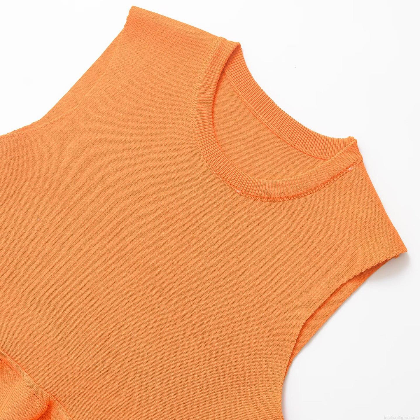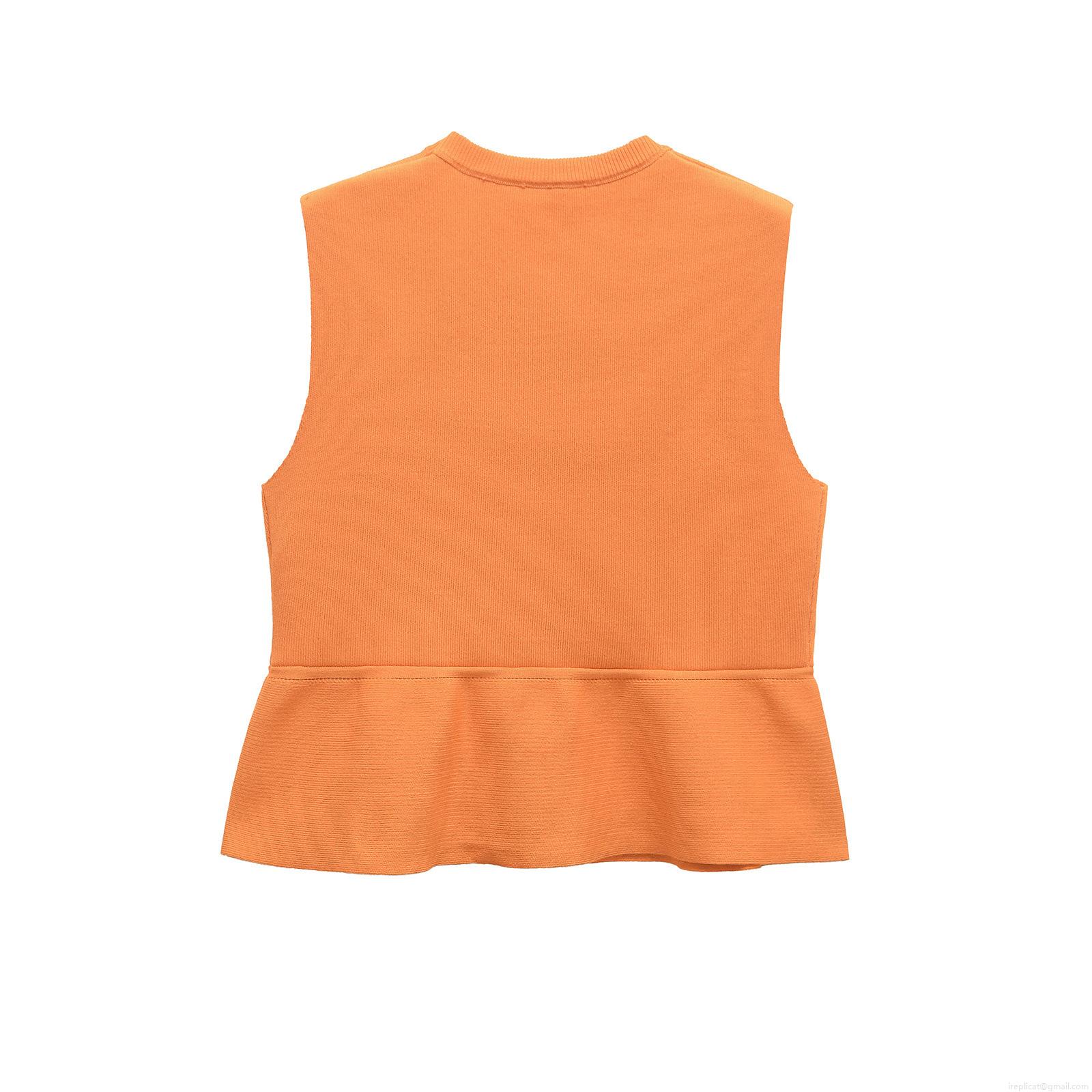 Women Mercerized Cotton Knit Peplum Top Round Neck Sleeveless Ruffled Hem Solid Color Summer Casual Knitwear Tank Top Blouse For Women