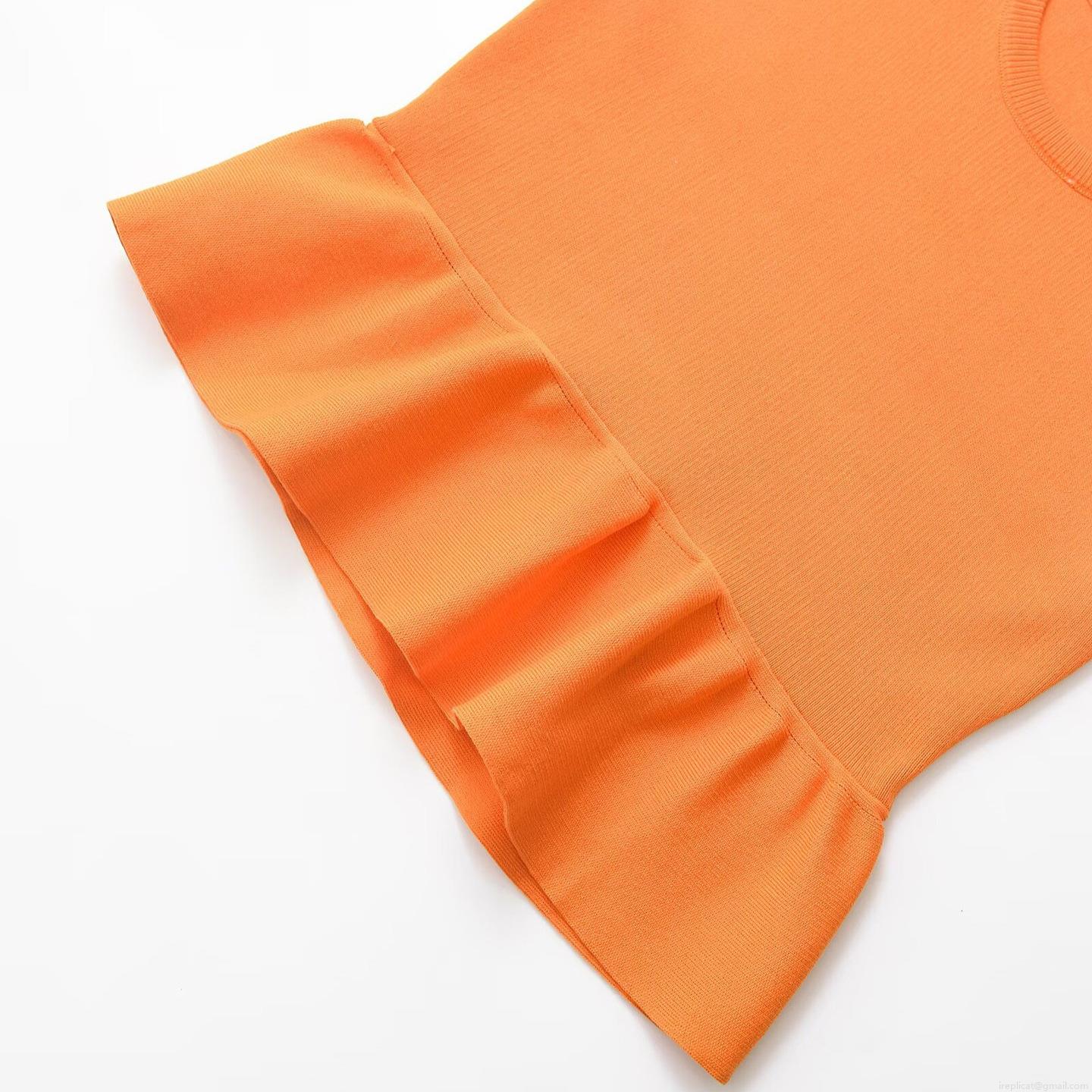 Solid Color, Ruffles, Short Skirt Hem, Knitted Texture