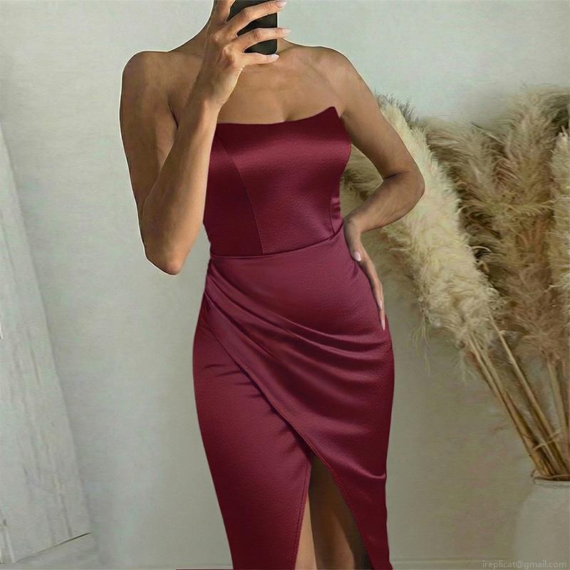 Solid Color, High Fork, Pleated Design, Strapless Style