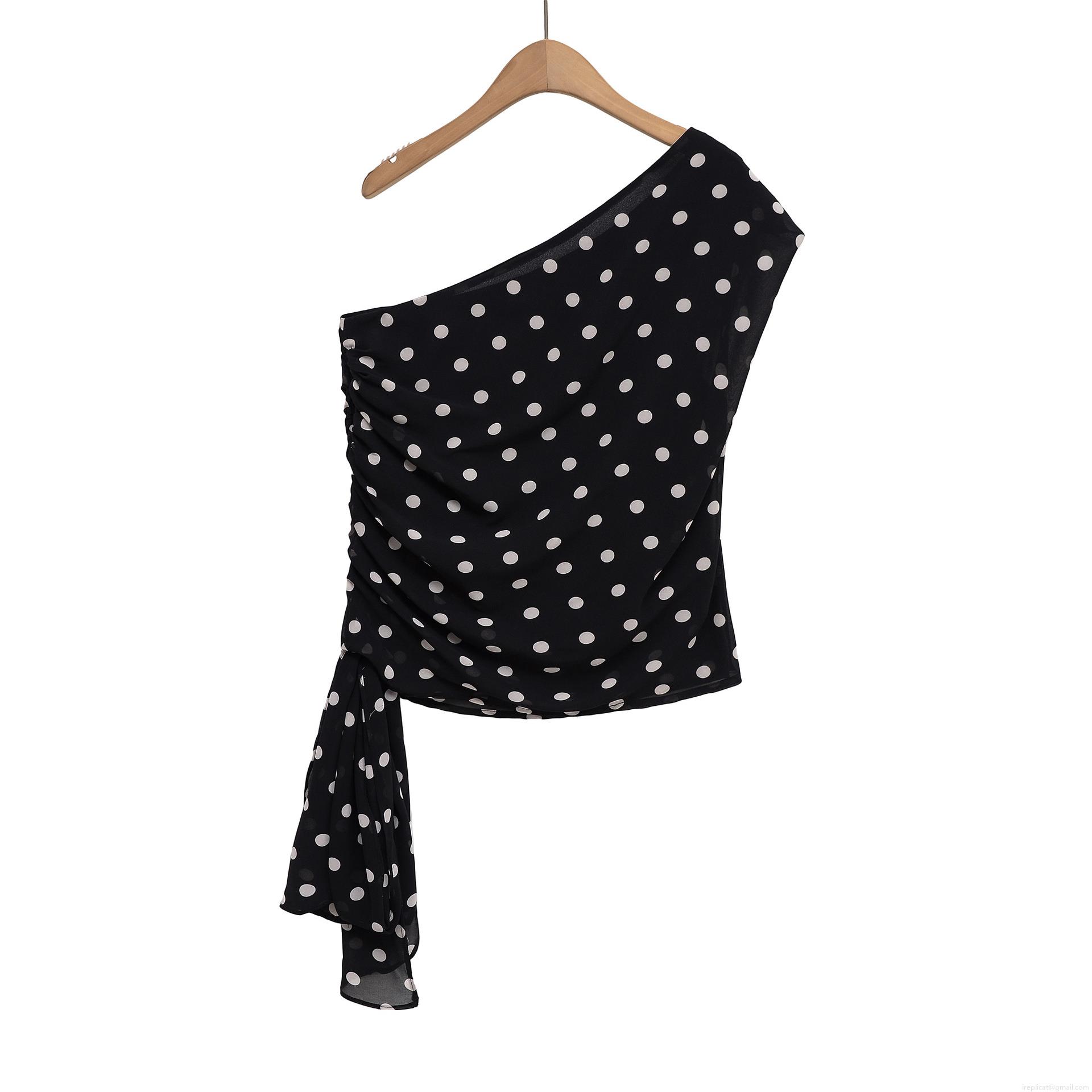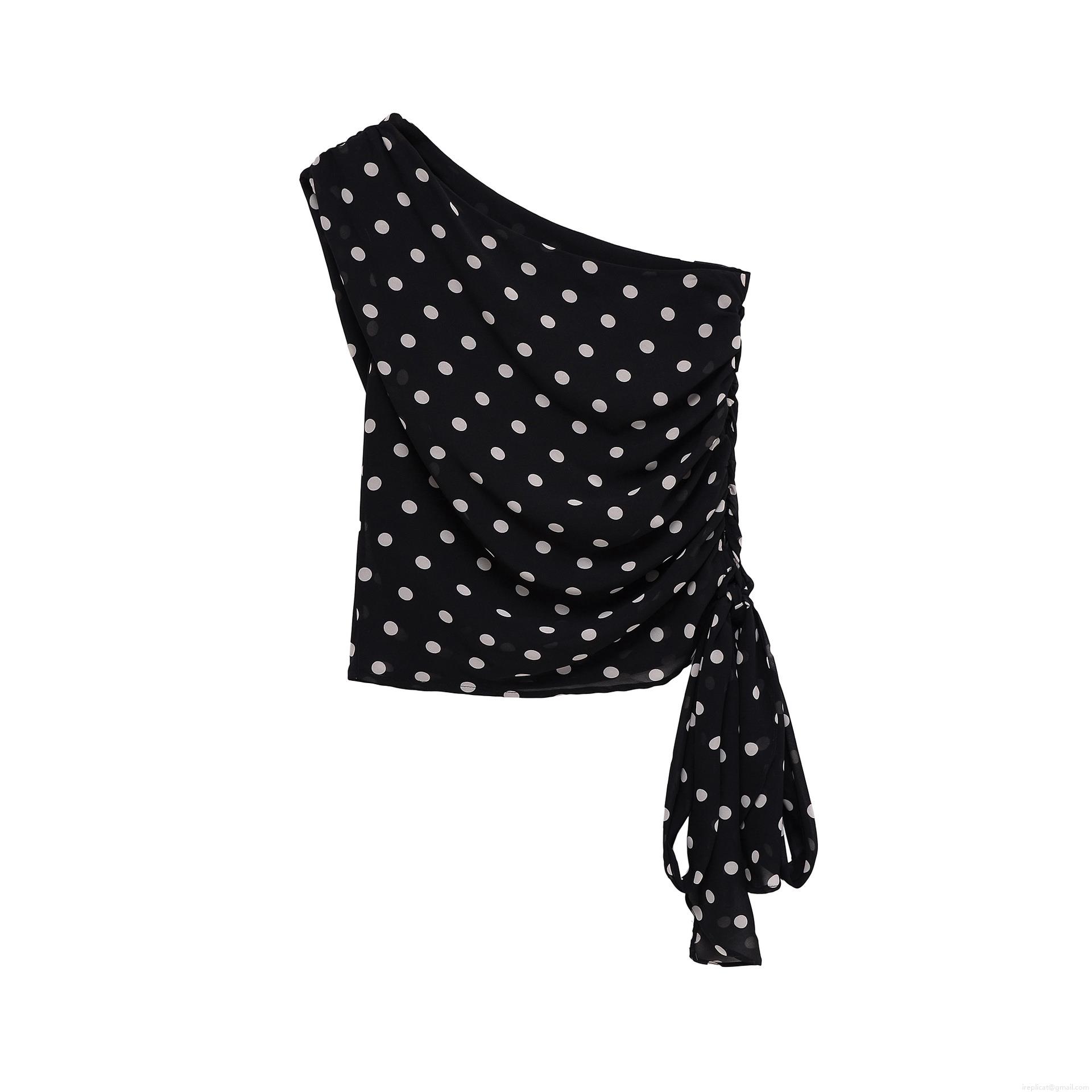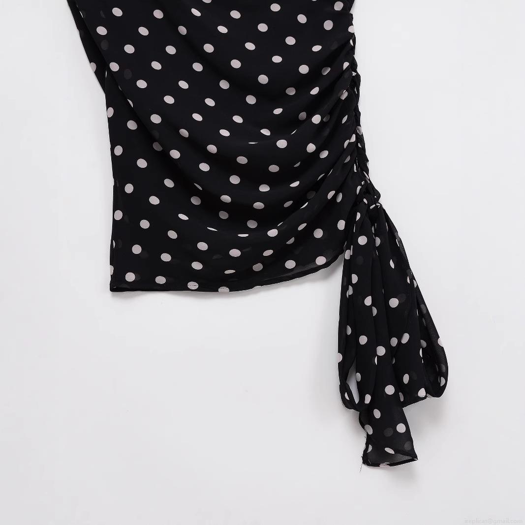Women One Shoulder Polka Dot Top Ruched Side Tie Drawstring Polyester T-Shirt Summer Streetwear Casual Sleeveless Blouse For Party Daily Wear
