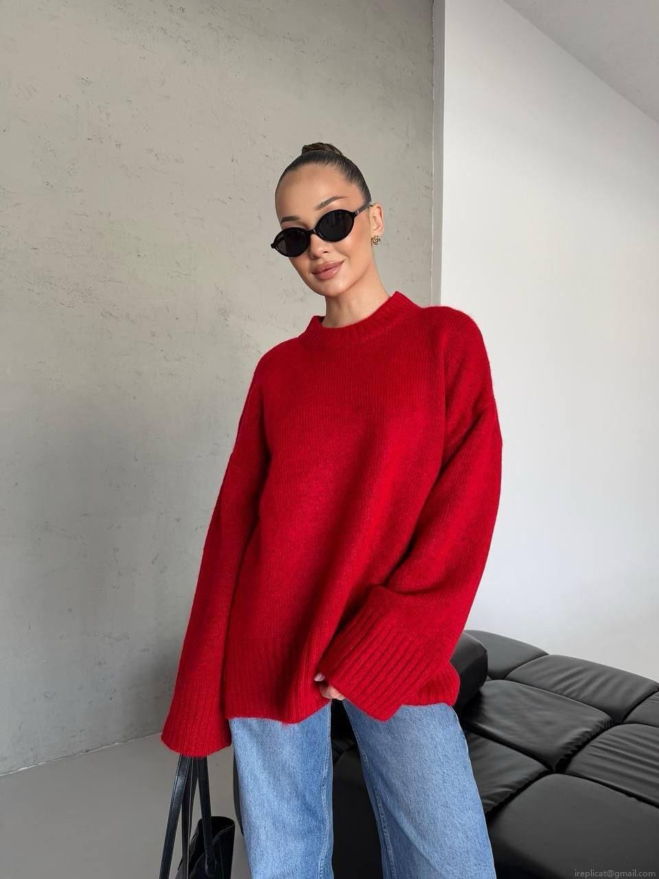 Women Oversized Cotton Polyester Knit Sweater Casual Crewneck Long Sleeve Pullover Loose Jumper Top Streetwear For Autumn Winter Lady