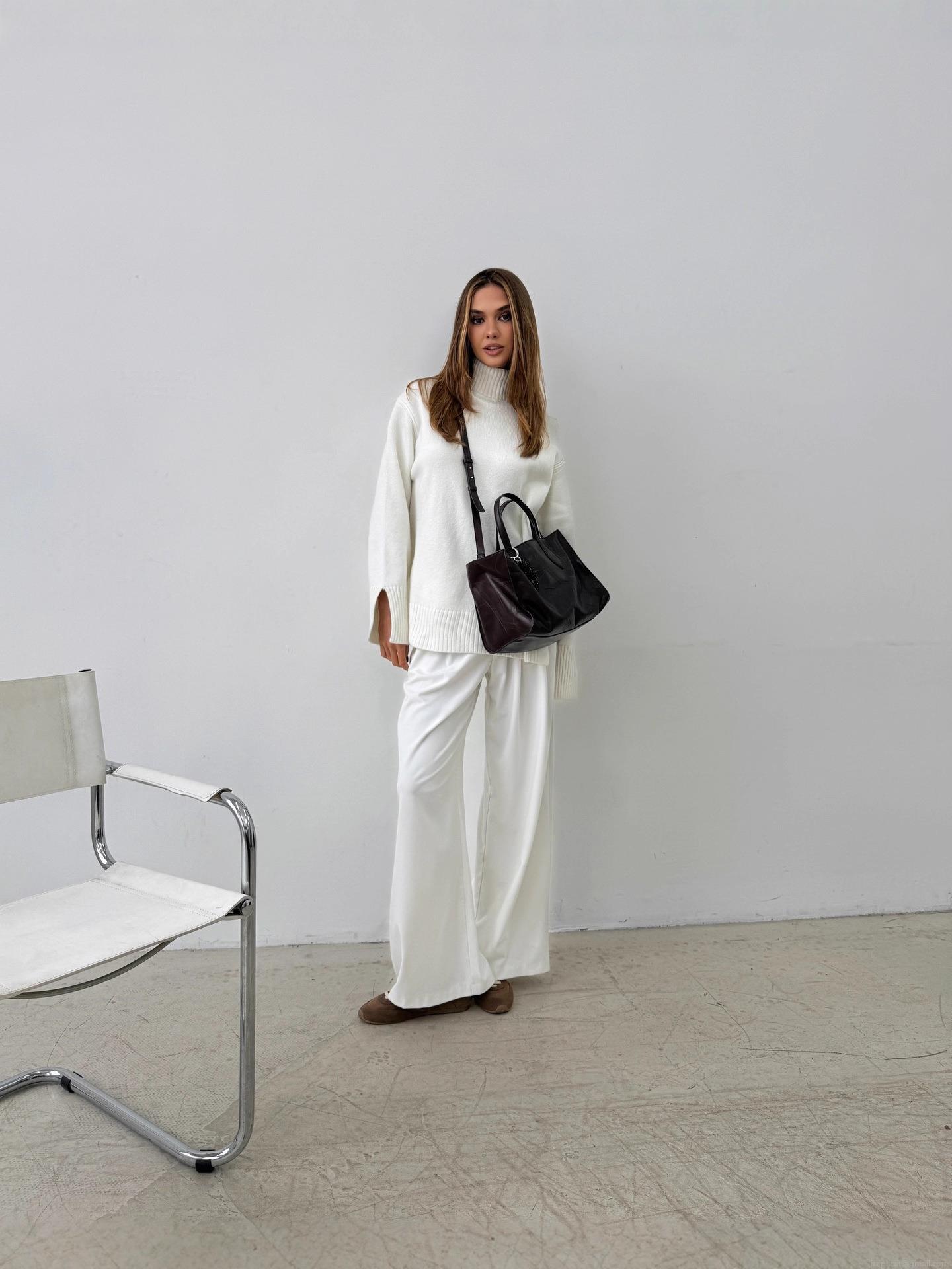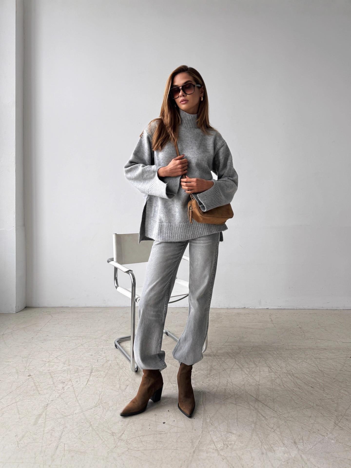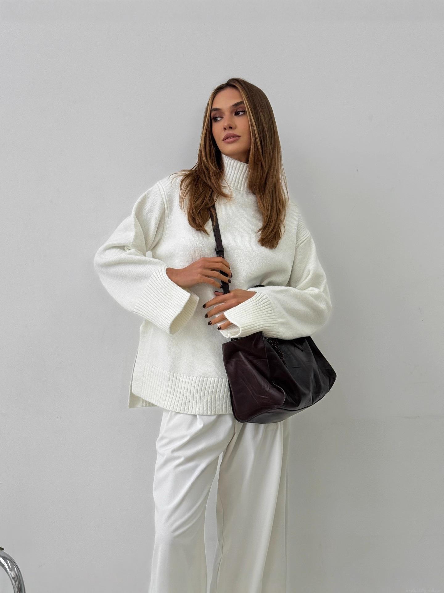 Women Oversized Turtleneck Knit Sweater Cotton Blend Long Sleeve Pullover With Side Slit For Autumn Winter Casual Streetwear Knitwear