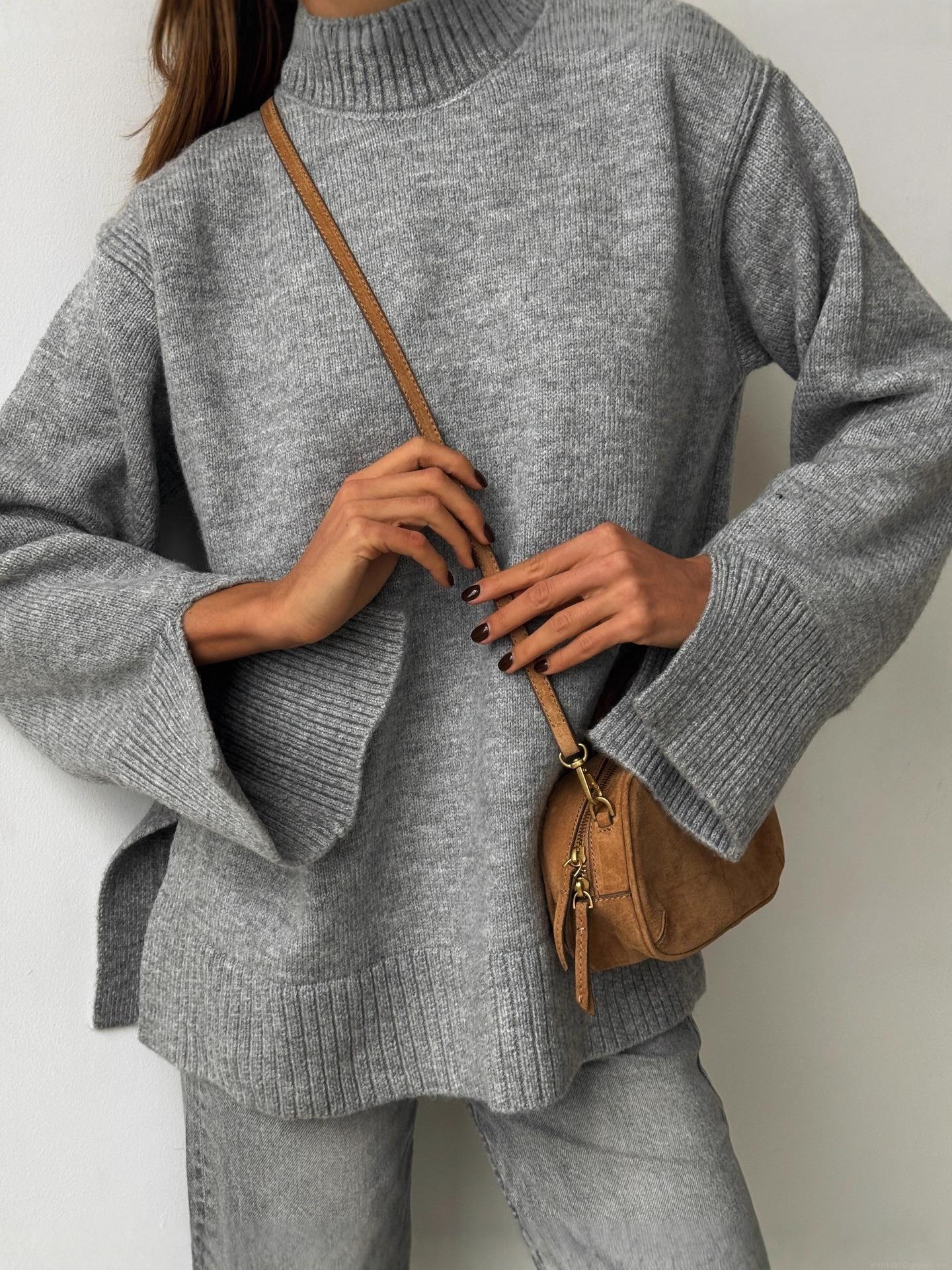 Solid Color, Turtleneck, Dropped Shoulder Sleeves, Side Slits, Ribbed Details