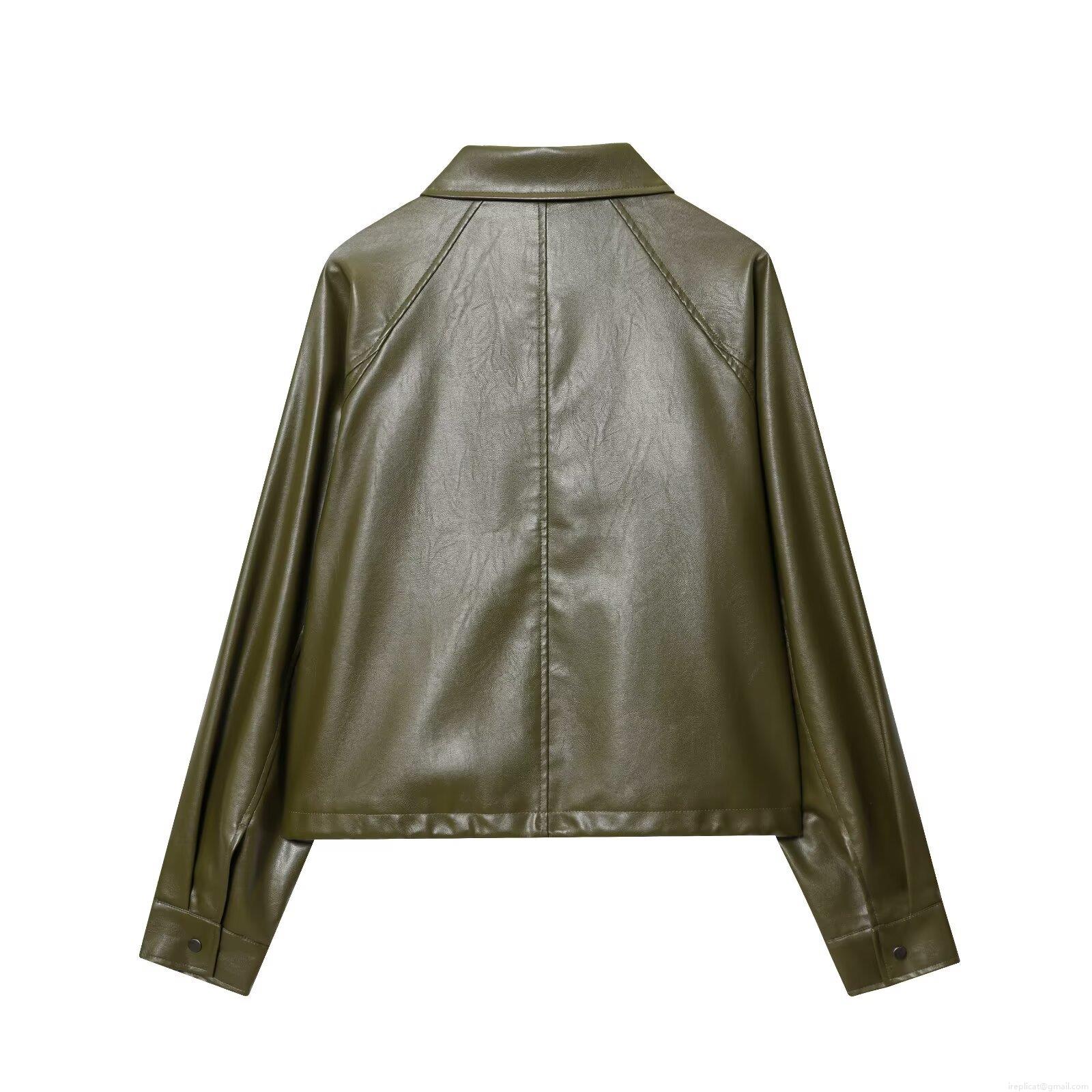 Women PU Faux Leather Jacket Streetwear Lapel Collar Zip Up Drawstring Hem Loose Fit Casual Outerwear Long Sleeve Biker Moto Jacket For Fall Winter