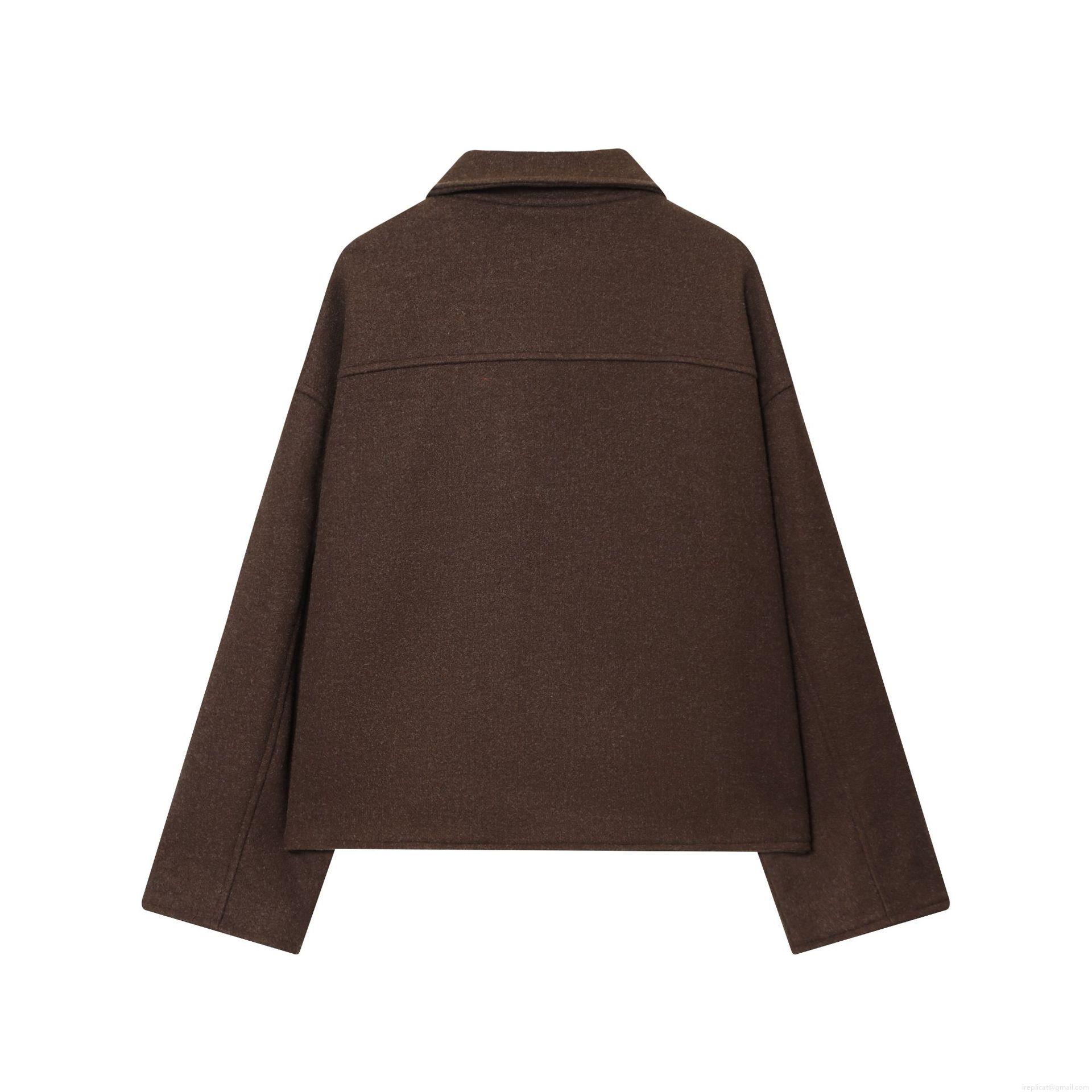 Women's Double Breasted Woolen Texture Short Jacket Coat Coffee Brown...