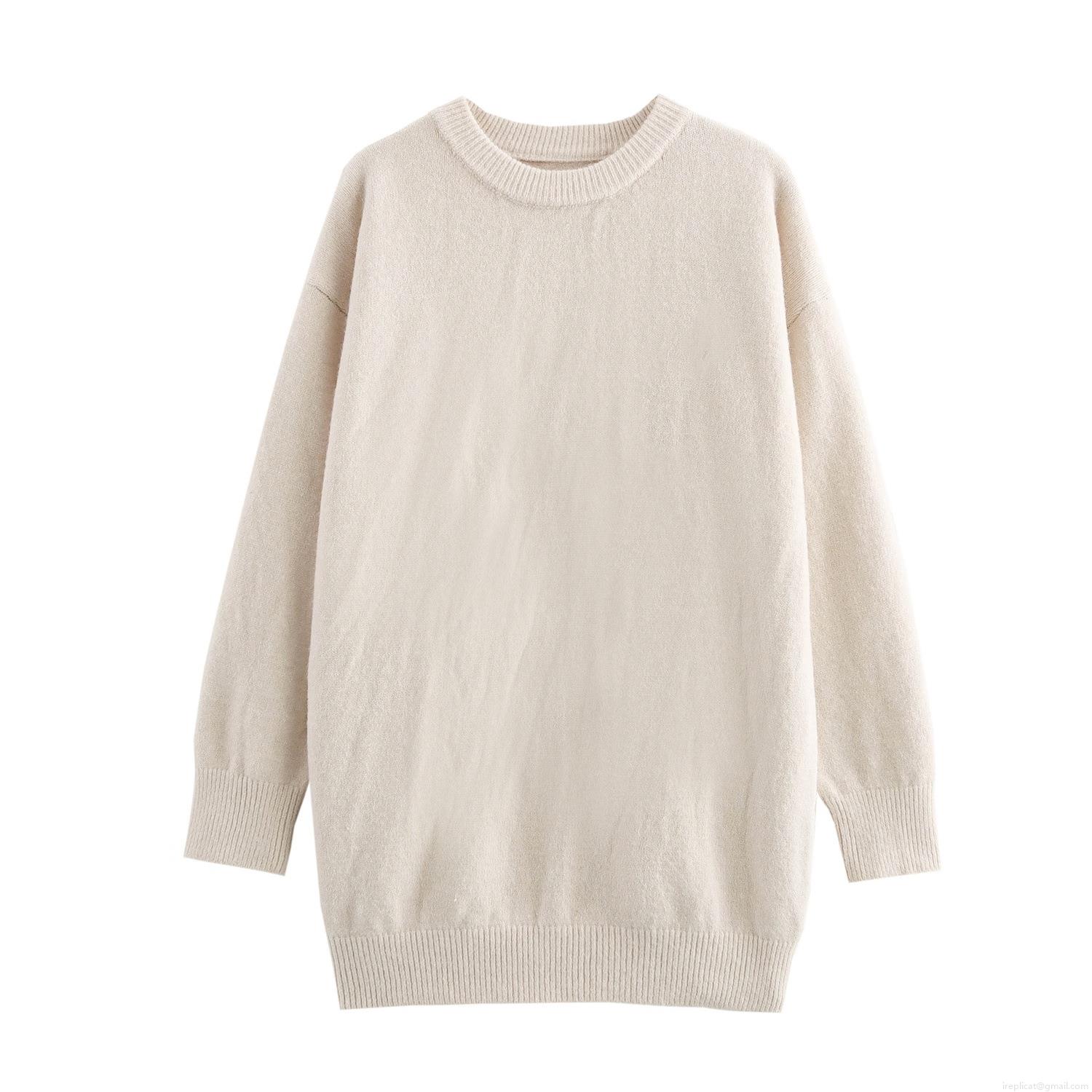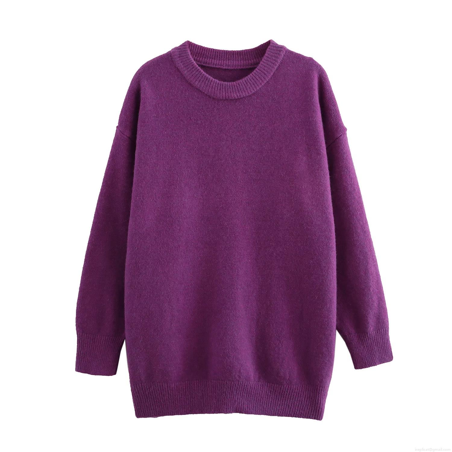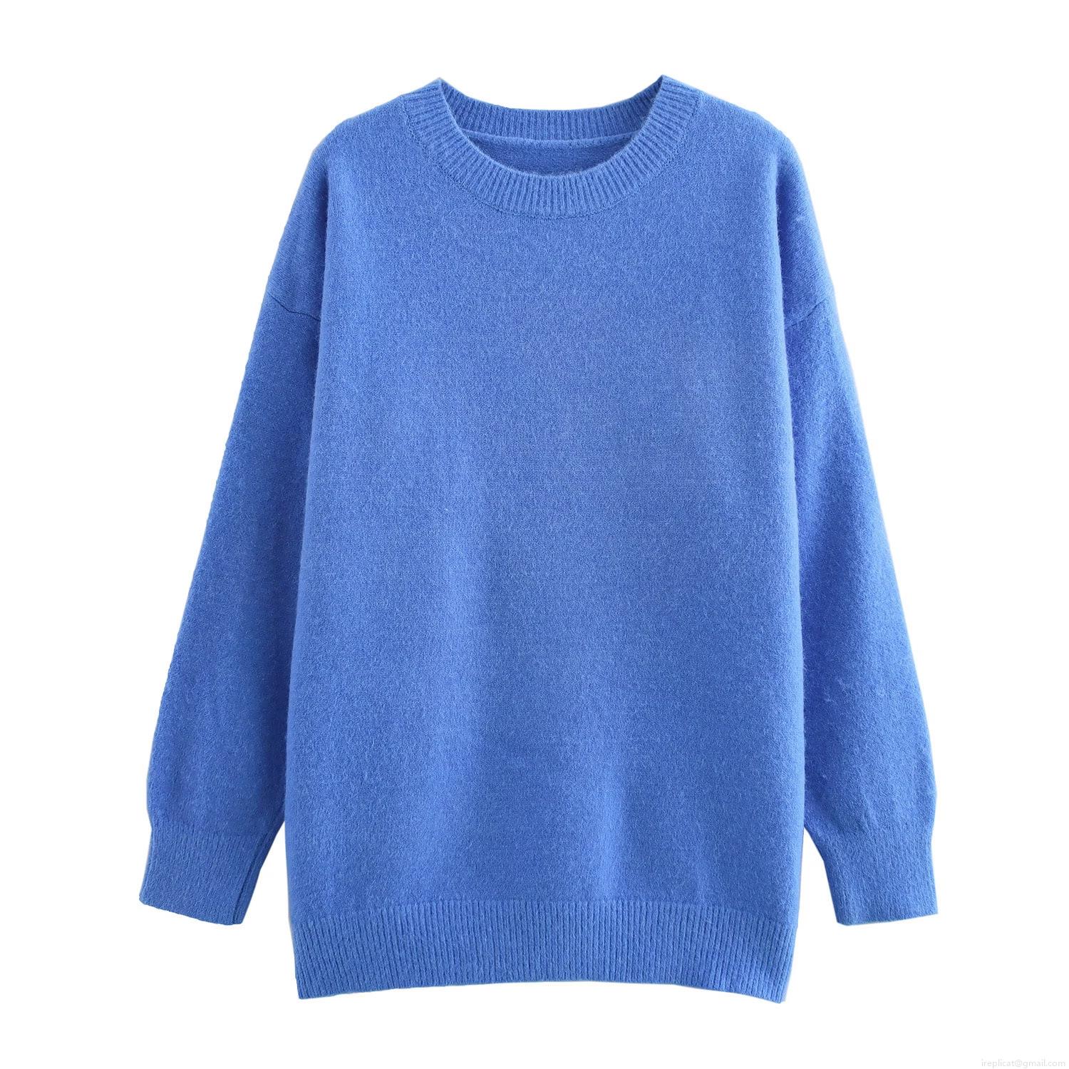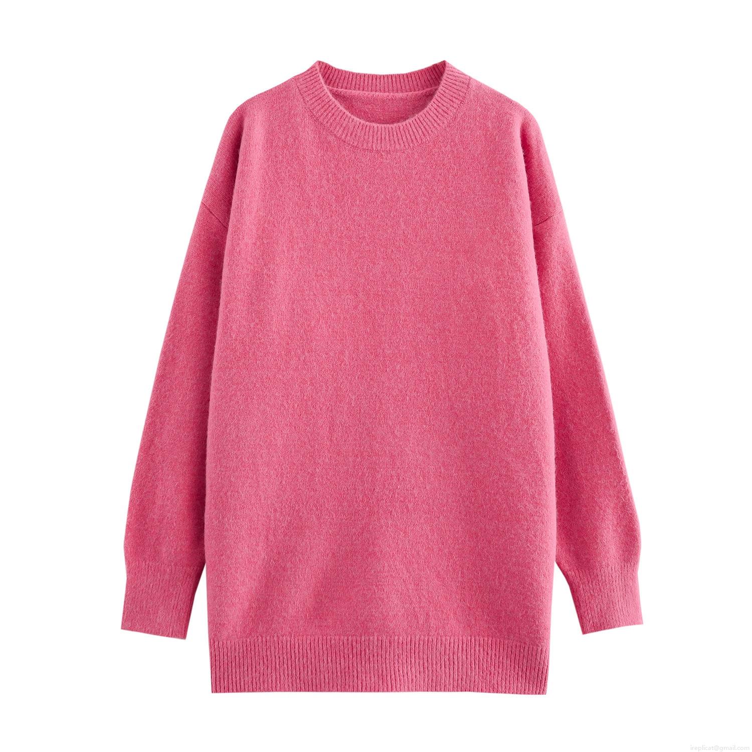 Women Round Neck Long Sleeve Pullover Knit Sweater Casual Loose Fit Polyester Blend Winter Warm Top Solid Color Streetwear For Ladies