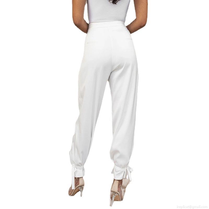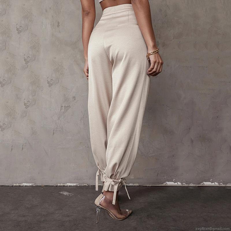 Women Satin High Waist Tapered Pants Solid Color Loose Casual Trousers With Ankle Ribbon Ties Elegant Commuter Office Lady Long Pants
