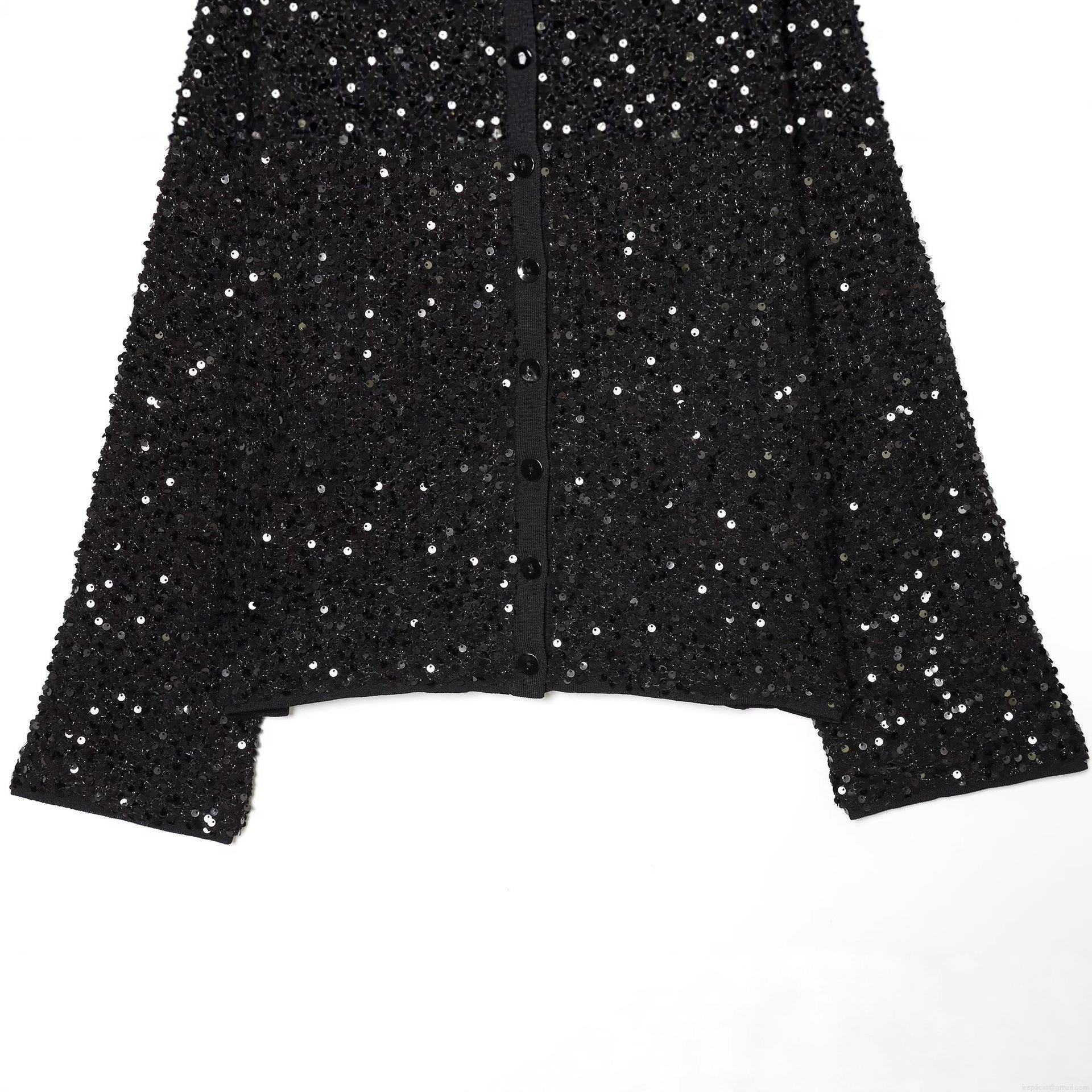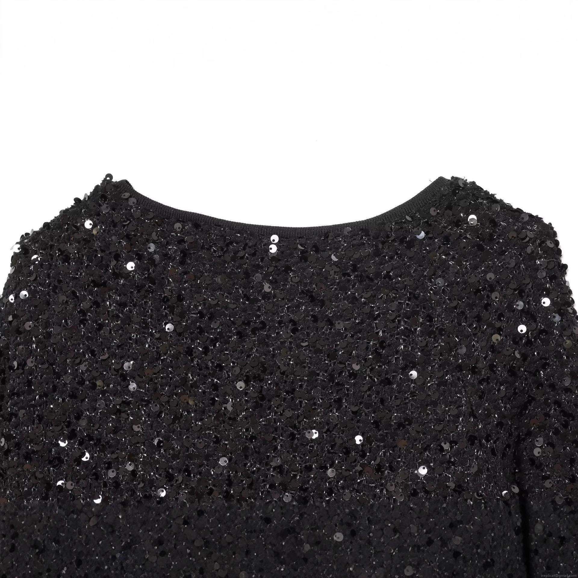 Women Sequin Sparkly Jacket Round Neck Long Sleeve Single Breasted Cardigan Elegant Party Shimmering Evening Outerwear Coat